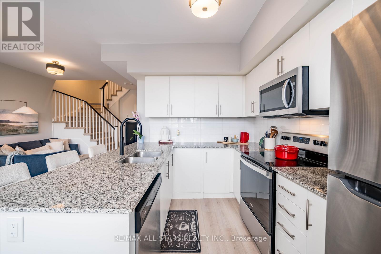 Beautifully upgraded Brighton model located in the award-winning Cardinal Point community at Geranium Vista Flats & Towns in Stouffville. This bright and modern 2-bedroom, 2-bathroom condo townhouse offers just under 1,200 sq ft of stylish, move-in ready living space. Features include 9 ft ceilings, floor-to-ceiling windows on both levels, laminate flooring, upgraded lighting, and views overlooking protected green space. The open-concept main living area includes a contemporary kitchen with quartz countertops, tile backsplash, white cabinetry, and breakfast bar, flowing into the living & dining space with walk-out to a private balcony-perfect for relaxing or entertaining. Upstairs you'll find two spacious bedrooms, convenient laundry closet, and a 5-piece bathroom. The primary bedroom features floor-to-ceiling windows, a walk-in closet, and beautiful green space views, while the second bedroom offers a double closet and the same incredible views. Enjoy an incredible rooftop terrace, providing a private outdoor space to entertain and take in the views without the maintenance of a backyard. One owned parking space and locker included, and high-speed internet is included in the maintenance fees. Ideally located just minutes from Stouffville's growing Main Street, restaurants, cafés, Longo's, Starbucks, shops, and everyday amenities. Convenient access to GO Transit and Highways 404 & 407 for an easy commute to Toronto. Don't miss out on this one! (id:4555)