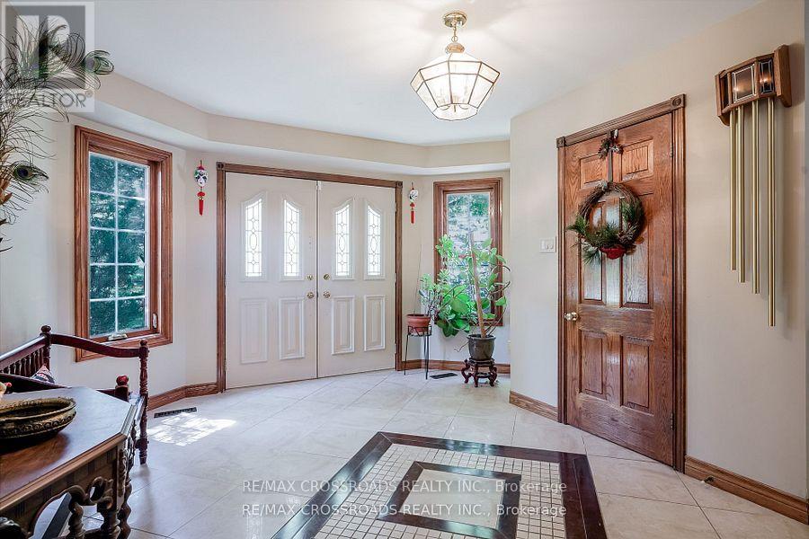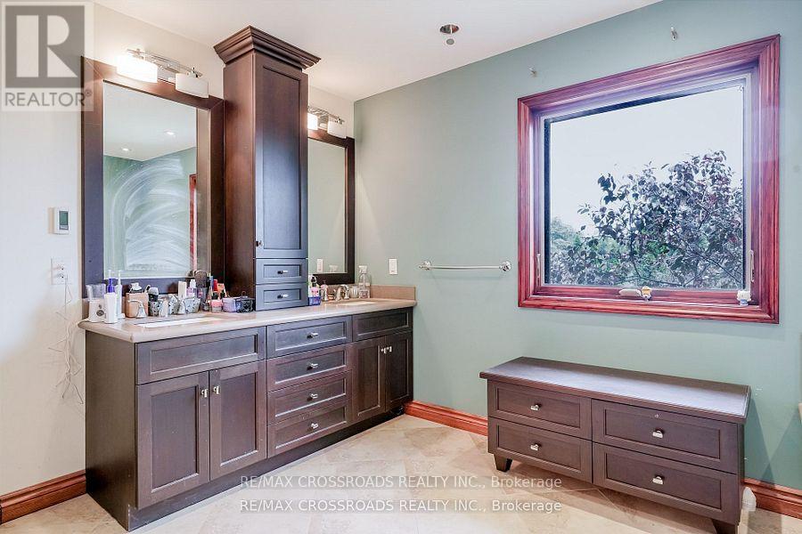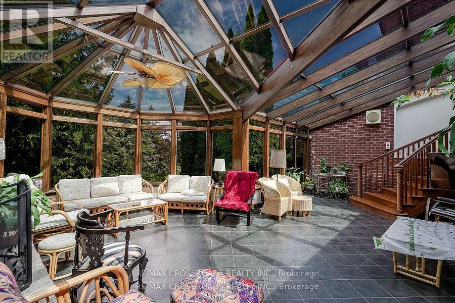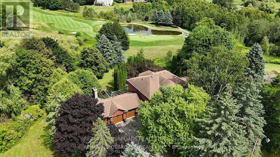 Beautiful 4 bedrooms/4 washrooms detached luxury estate home with over 5000 Sq Ft of Indoor Living Space on a hilltop with unhindered views of Sunrise and Moonrise yearlong.An outdoor Oasis with 4 level fully renovated and customized deck of over 1200 Sq Ft, surrounded by various matured trees that provide perfect privacy. The deck overlooks the 16th hole of the Golf Course, pond, and all season flower and vegetable gardens, with a fenced-in area with gates for pets.Many Extras And Upgrades, see schedule C. Custom built Conservatory/Sunroom with glass ceiling, heated flooring, separate cooling and heating systems, wood fireplace and 3 entrances.A High ceiling caved-in Living room with 8 massive picturesque windows, fireplace and uninterrupted views with access to kitchen, dining area and backyard.Front foyer with double closet and tiles, Massive 10 Seater indoor dining room with a giant bay window overlooking the front lawn. Professionally Designed Custom Built Kraft Maid Kitchen with Island, Granite countertop, No-Flame Induction Cooktop, Two Ovens and Stainless Steel appliances with adjoining additional dining area with walkout deck to backyard. Custom built Anderson Real wood pine windows with oak trim (Most). 200 Amps Electrical Panel is connected to a gas-powered generator that has provisions for upgrades. Fully Computerized Mobile based, self-adjusting, weather controlled 18 zone sprinkler system for the lawn, vegetable and flower gardens, Mechanically and Digitally Controlled Outdoor lights and electric sockets, smart switches and thermostat. Bedrooms with engineered hardwood. Primary room with ensuite - heated flooring washroom 5 Pcs including Jacuzzi, 4 Cabico Bathrooms , Finished Basement With 2 Separate Walk Outs, with full heated flooring washroom, game room and spacious Living room with walk out to Back yard.Furnace and AC (2016), Well System upgraded in 2024, Central Vacuum, Hot water tank Rental, Water treatment system, and much more you see. (id:4555)