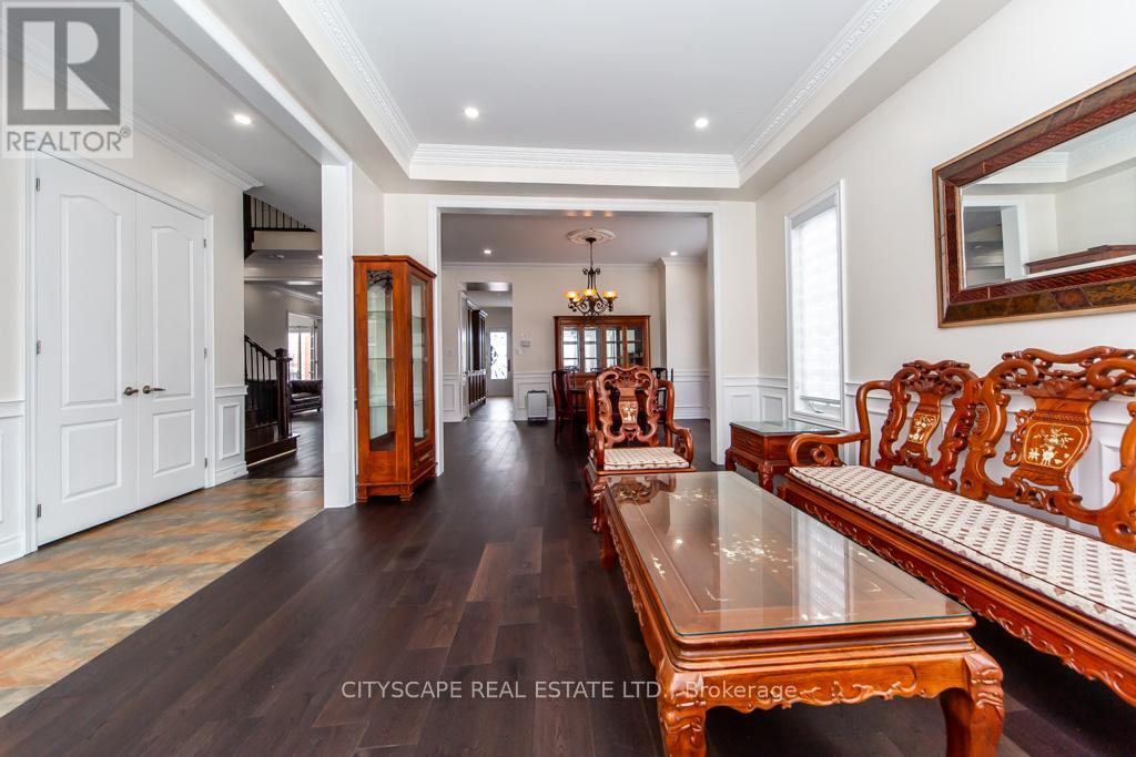 Welcome to this magnificent, fully upgraded Executive home offering approximately 3,800 sq. ft. of luxurious living space plus around 1,500 sq. ft. of fully finished walk-out basement. This stunning 5-bedroom residence showcases premium upgrades throughout, including brand new hardwood flooring across the entire home, granite countertops in the kitchen and all bathrooms, elegant cornice moldings, wainscoting, pot lights, and valence Chandeliers. A breathtaking spiral oak staircase with iron pickets creates a grand impression. The main floor features a thoughtfully designed layout with a separate formal living room, elegant dining room, and a spacious family room with a cozy gas fireplace-perfect for both entertaining and comfortable family living. The upgraded chef's kitchen features granite counters, high-end appliances, and a bright breakfast area that walks out to a huge oversized deck. A large main-floor office/den offers versatile space for working from home, studying, or additional living needs. Main-floor laundry with direct garage access and soaring 10-ft ceilings add convenience and elegance. The second floor offers 5 generously sized bedrooms with large windows and ample closet space, filling the home with natural light. Primary Bedroom features a spa-like 5-piece ensuite and two walk-in closets for his and hers. The remaining bedrooms are thoughtfully connected with convenient Jack & Jill bathrooms, offering privacy and practicality. The fully finished walk-out basement adds incredible value and versatility, featuring 2 additional bedrooms, a full washroom, a huge kitchen, and a spacious living area with direct walk-out access to the backyard garden-perfect for extended family living, Renting or potential in-law accommodation. Situated on a premium corner lot, the backyard is a true private oasis featuring two oversized decks, a Fountain & Gazebo. Homes of this caliber, size, and upgrades rarely come. A truly impressive property that must be experienced! (id:4555)