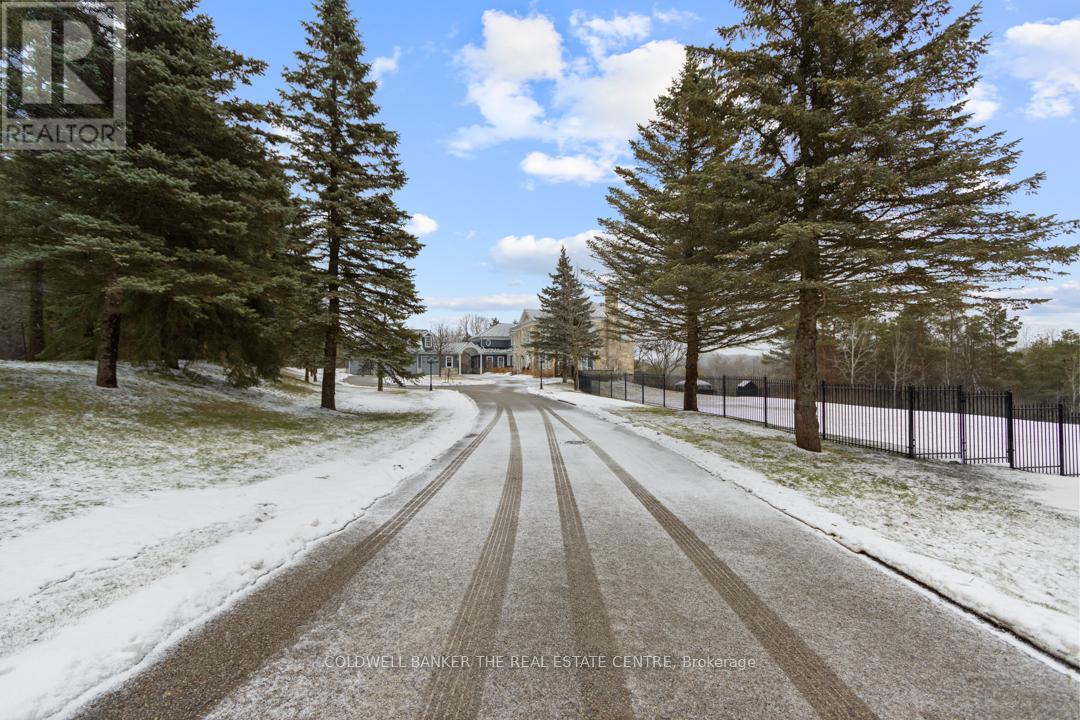 Beautiful 7600+ sq.ft. home built in 1994, set on a peaceful 105 acres with pond just outside of Aurora. Featuring 4+1 bedrooms, spacious principal rooms, finished basement with walk-out to pool & custom finishes throughout, 4-car garage, plenty of trees. Gated entry provides added privacy security from Warden Ave. Property includes tennis court, barn/area, outbuilding, pond + much more. Property serviced by geothermal heating, central air, propane and electric fireplaces. (id:4555)