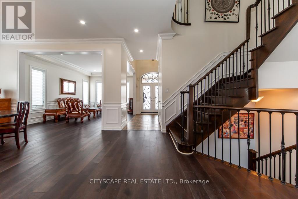Welcome to this magnificent, fully upgraded Executive home offering approximately 3,800 sq. ft. of luxurious living space plus around 1,500 sq. ft. of fully finished walk-out basement. This stunning 5-bedroom residence showcases premium upgrades throughout, including brand new hardwood flooring across the entire home, granite countertops in the kitchen and all bathrooms, elegant cornice moldings, wainscoting, pot lights, and valence Chandeliers. A breathtaking spiral oak staircase with iron pickets creates a grand impression. The main floor features a thoughtfully designed layout with a separate formal living room, elegant dining room, and a spacious family room with a cozy gas fireplace-perfect for both entertaining and comfortable family living. The upgraded chef's kitchen features granite counters, high-end appliances, and a bright breakfast area that walks out to a huge oversized deck. A large main-floor office/den offers versatile space for working from home, studying, or additional living needs. Main-floor laundry with direct garage access and soaring 10-ft ceilings add convenience and elegance. The second floor offers 5 generously sized bedrooms with large windows and ample closet space, filling the home with natural light. Primary Bedroom features a spa-like 5-piece ensuite and two walk-in closets for his and hers. The remaining bedrooms are thoughtfully connected with convenient Jack & Jill bathrooms, offering privacy and practicality. The fully finished walk-out basement adds incredible value and versatility, featuring 2 additional bedrooms, a full washroom, a huge kitchen, and a spacious living area with direct walk-out access to the backyard garden-perfect for extended family living, Renting or potential in-law accommodation. Situated on a premium corner lot, the backyard is a true private oasis featuring two oversized decks, a Fountain & Gazebo. Homes of this caliber, size, and upgrades rarely come. A truly impressive property that must be experienced! (id:4555)