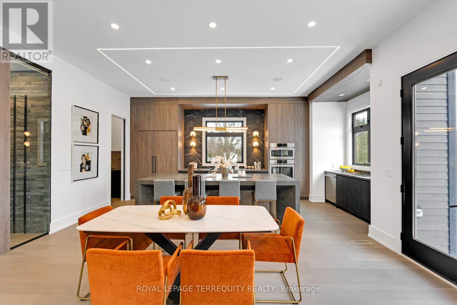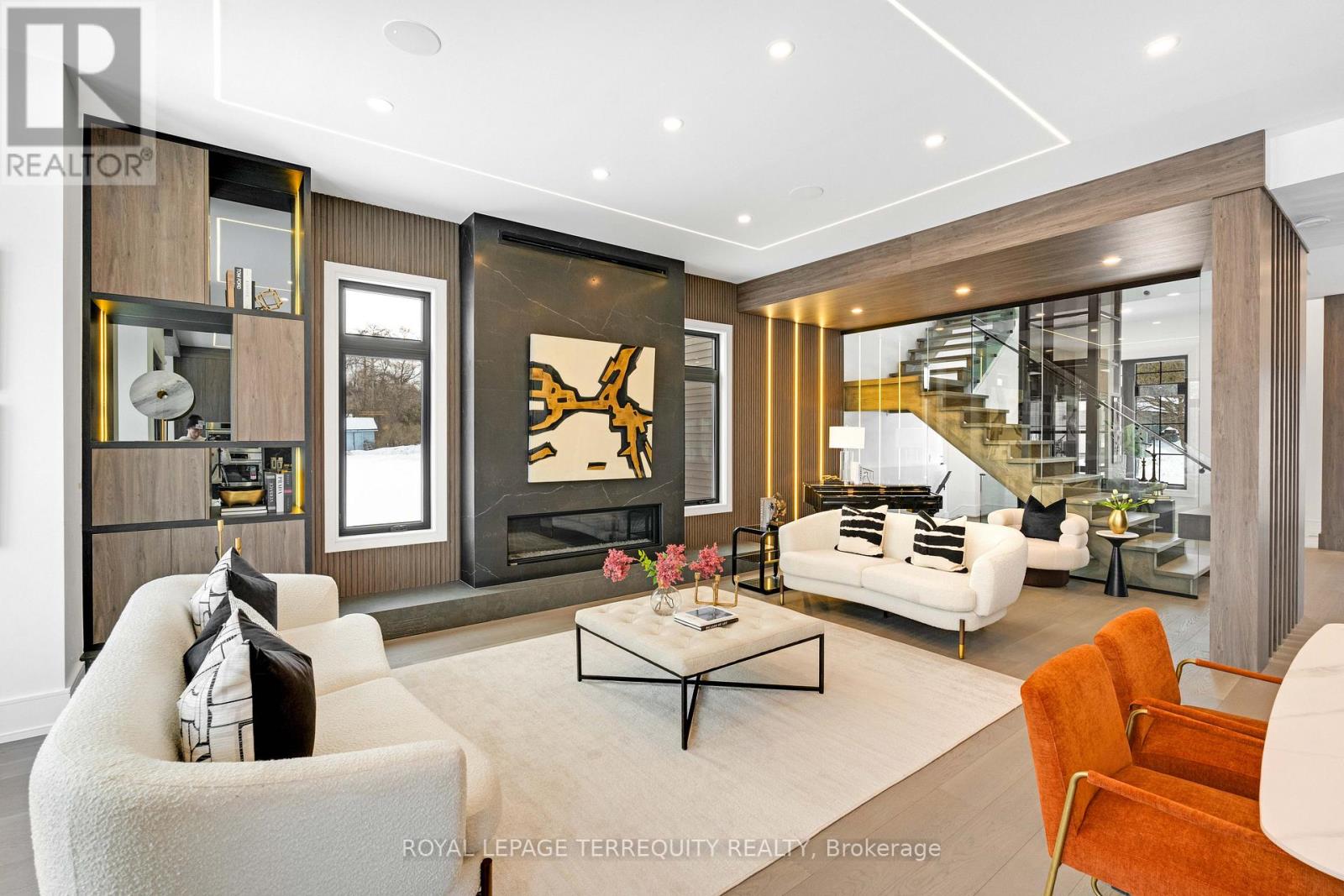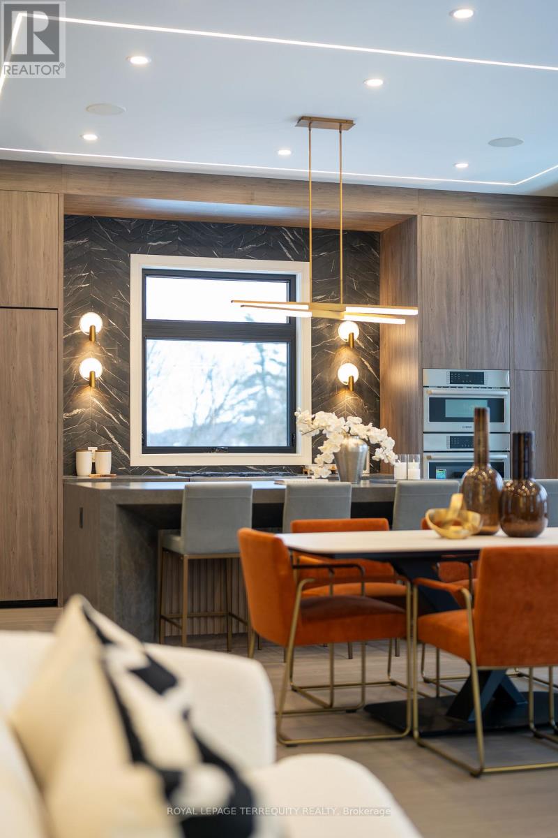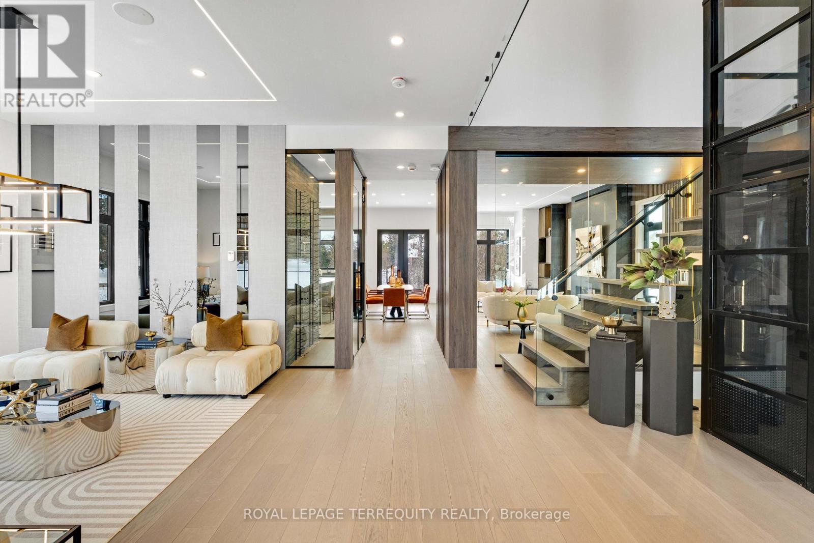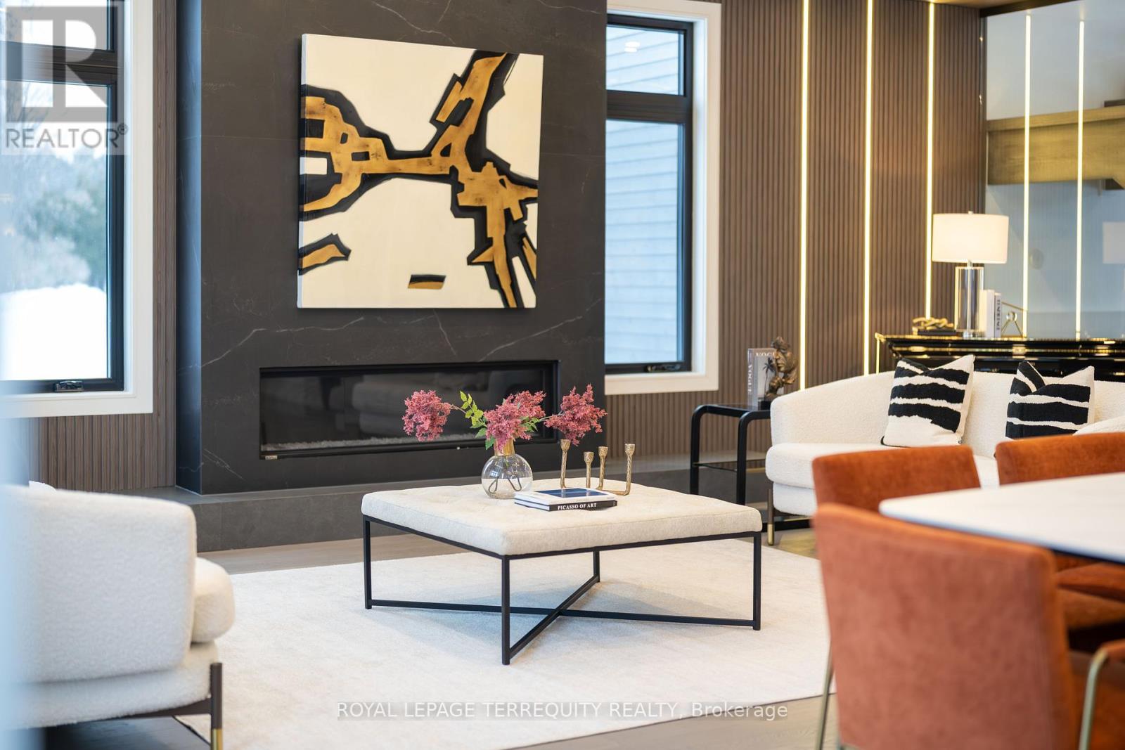 An extraordinary waterfront offering, this residence exemplifies architectural presence and timeless lakeside luxury. Peacefully positioned along 100+ feet of prime shoreline and set on an expansive 214 x 349 ft lot, this one-of-a-kind property blends refined sophistication with serene natural beauty, creating a seamless indoor-outdoor living experience. Thoughtfully designed with wide-plank hardwood flooring, custom millwork, and curated designed finishes, the home features flowing principal spaces enhanced by integrated LED ceiling details and statement lighting. A striking glass elevator adds both convenience and architectural presence, reinforcing the home's elevated design. This open-concept kitchen is a true showpiece, wrapped in premium stone surfaces and bespoke cabinetry, and equipped with top-tier paneled appliances. Designed for effortless entertaining and elevated everyday living, it anchors the home with both function and refined style. Offering 4 spacious bedrooms and 4 beautifully appointed bathrooms, the residence delivers comfort, privacy, and exceptional craftsmanship throughout. The primary suite serves as a private retreat with a generously scaled, spa-inspired ensuite finished with luxurious details and premium fixtures. A large loft above the garage, complete with a rough-in for an additional washroom, provides outstanding flexibility for future expansion-ideal for a guest suite, studio, or multigenerational living. The 3-car garage with car lift further enhances the home's rarity. Beyond its architectural elegance, the property presents significant long-term value with an approved severance application (with conditions), offering the opportunity to build an additional residence. A rare offering defined by scale, craftsmanship, and a level of finish seldom seen on the market. (id:4555)