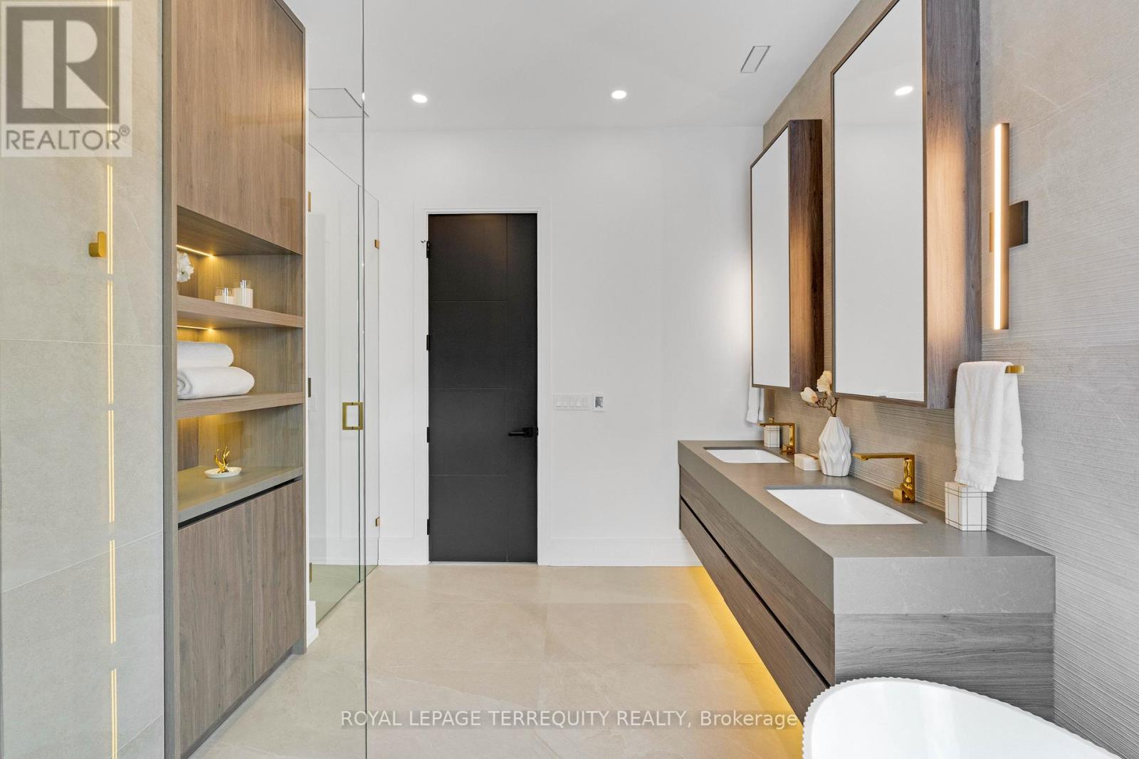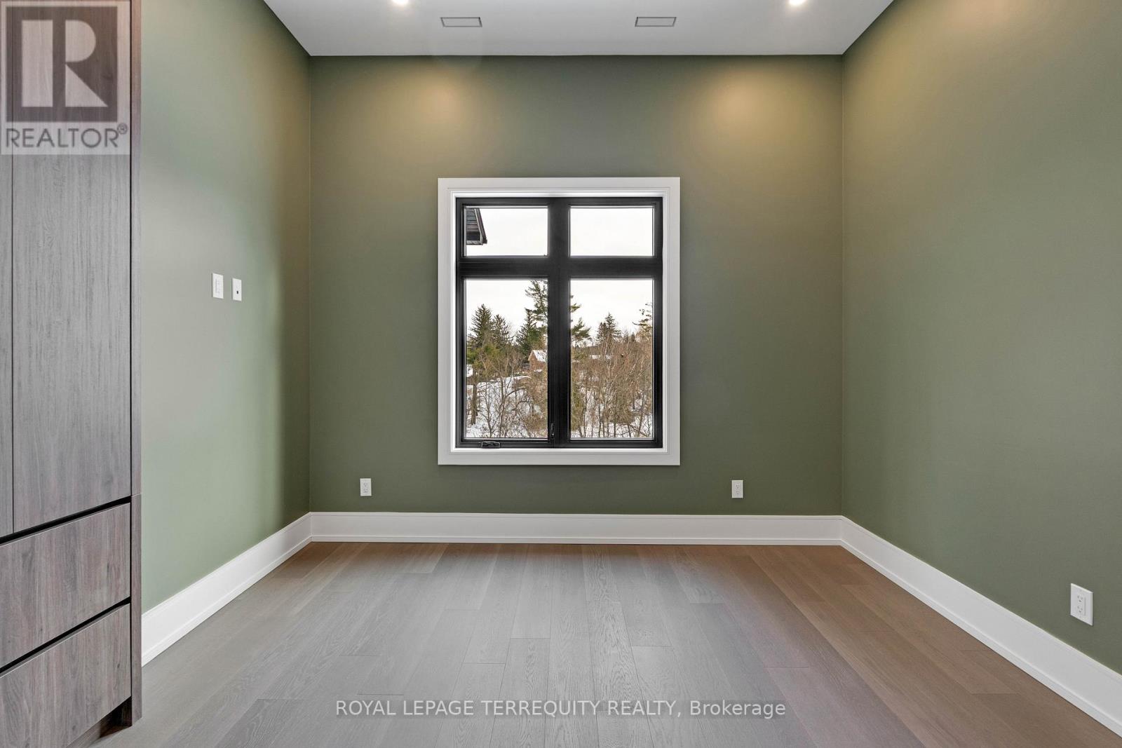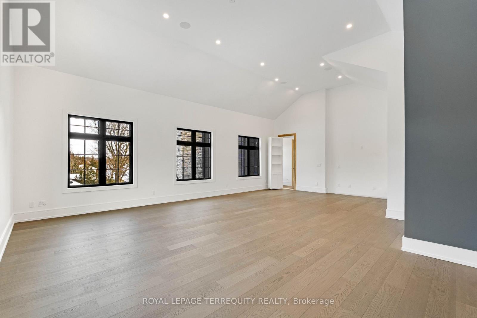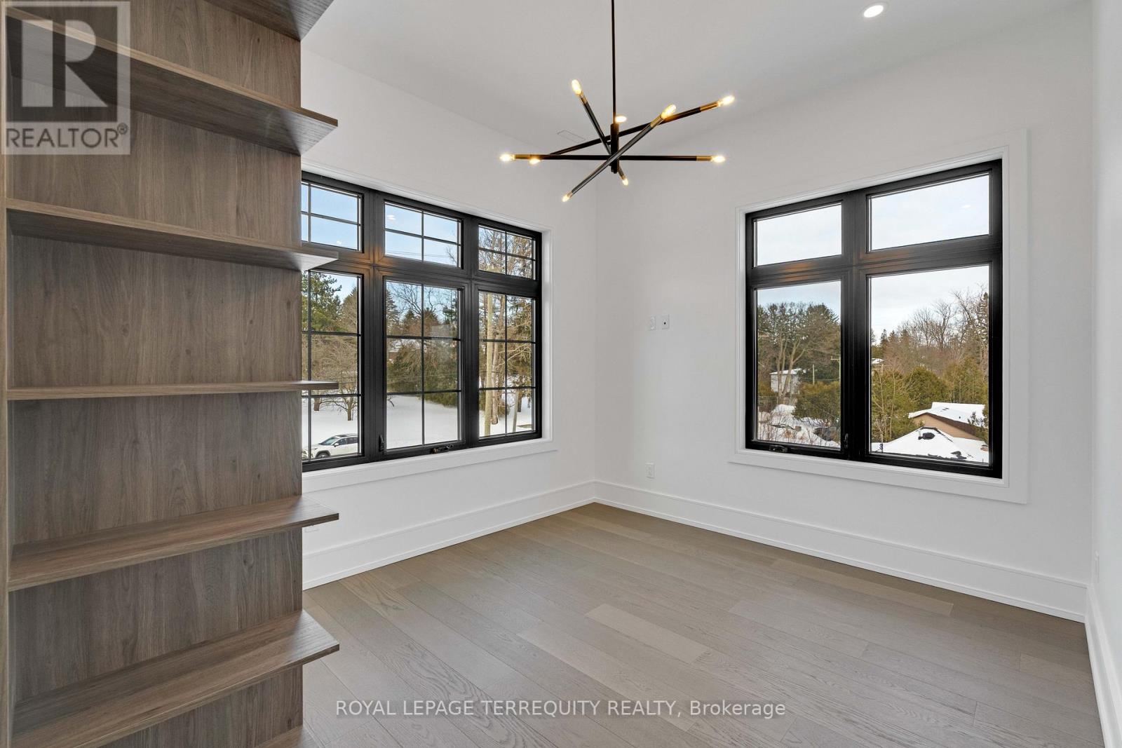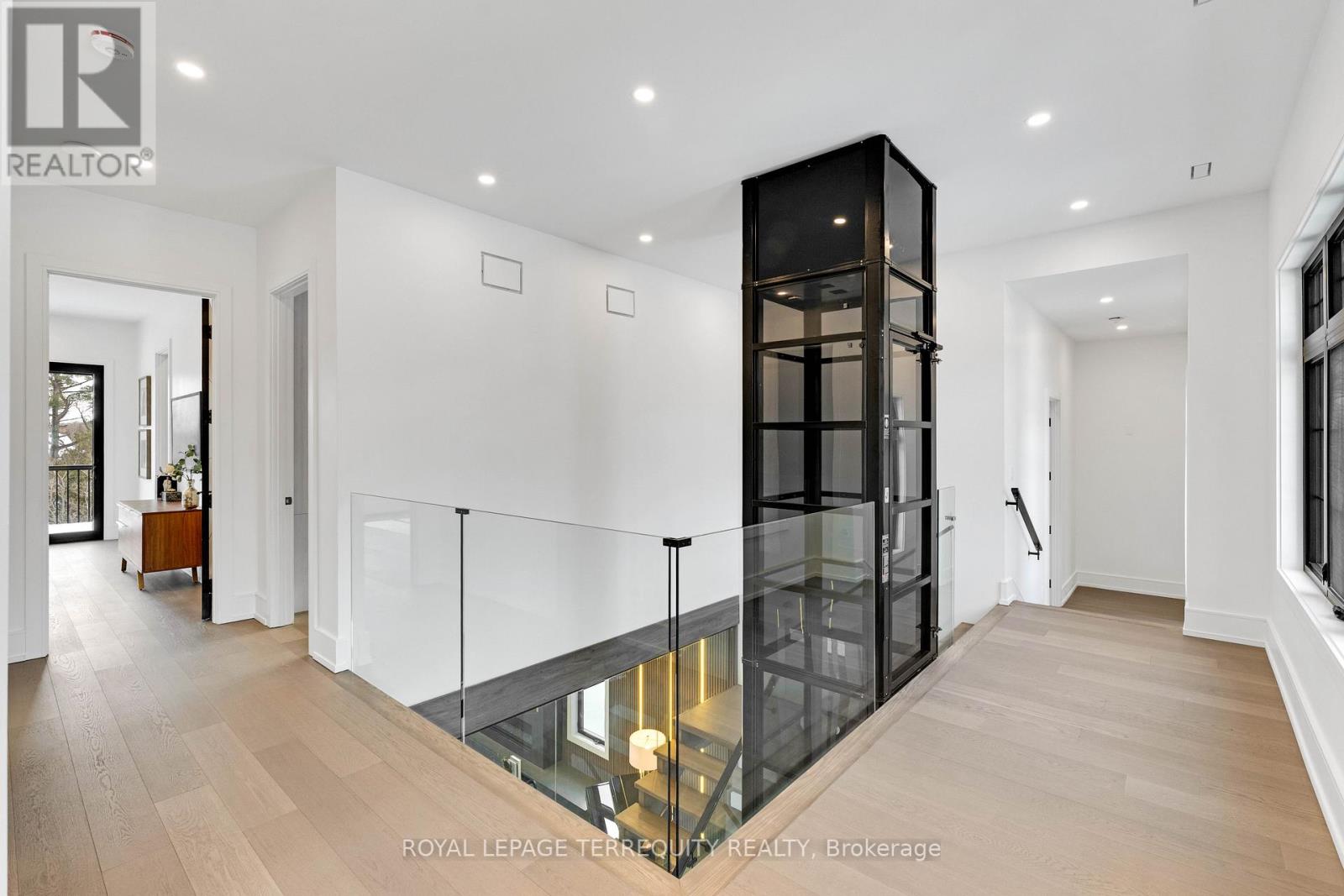 An extraordinary waterfront offering, this residence exemplifies architectural presence and timeless lakeside luxury. Peacefully positioned along 100+ feet of prime shoreline and set on an expansive 214 x 349 ft lot, this one-of-a-kind property blends refined sophistication with serene natural beauty, creating a seamless indoor-outdoor living experience. Thoughtfully designed with wide-plank hardwood flooring, custom millwork, and curated designed finishes, the home features flowing principal spaces enhanced by integrated LED ceiling details and statement lighting. A striking glass elevator adds both convenience and architectural presence, reinforcing the home's elevated design. This open-concept kitchen is a true showpiece, wrapped in premium stone surfaces and bespoke cabinetry, and equipped with top-tier paneled appliances. Designed for effortless entertaining and elevated everyday living, it anchors the home with both function and refined style. Offering 4 spacious bedrooms and 4 beautifully appointed bathrooms, the residence delivers comfort, privacy, and exceptional craftsmanship throughout. The primary suite serves as a private retreat with a generously scaled, spa-inspired ensuite finished with luxurious details and premium fixtures. A large loft above the garage, complete with a rough-in for an additional washroom, provides outstanding flexibility for future expansion-ideal for a guest suite, studio, or multigenerational living. The 3-car garage with car lift further enhances the home's rarity. Beyond its architectural elegance, the property presents significant long-term value with an approved severance application (with conditions), offering the opportunity to build an additional residence. A rare offering defined by scale, craftsmanship, and a level of finish seldom seen on the market. (id:4555)