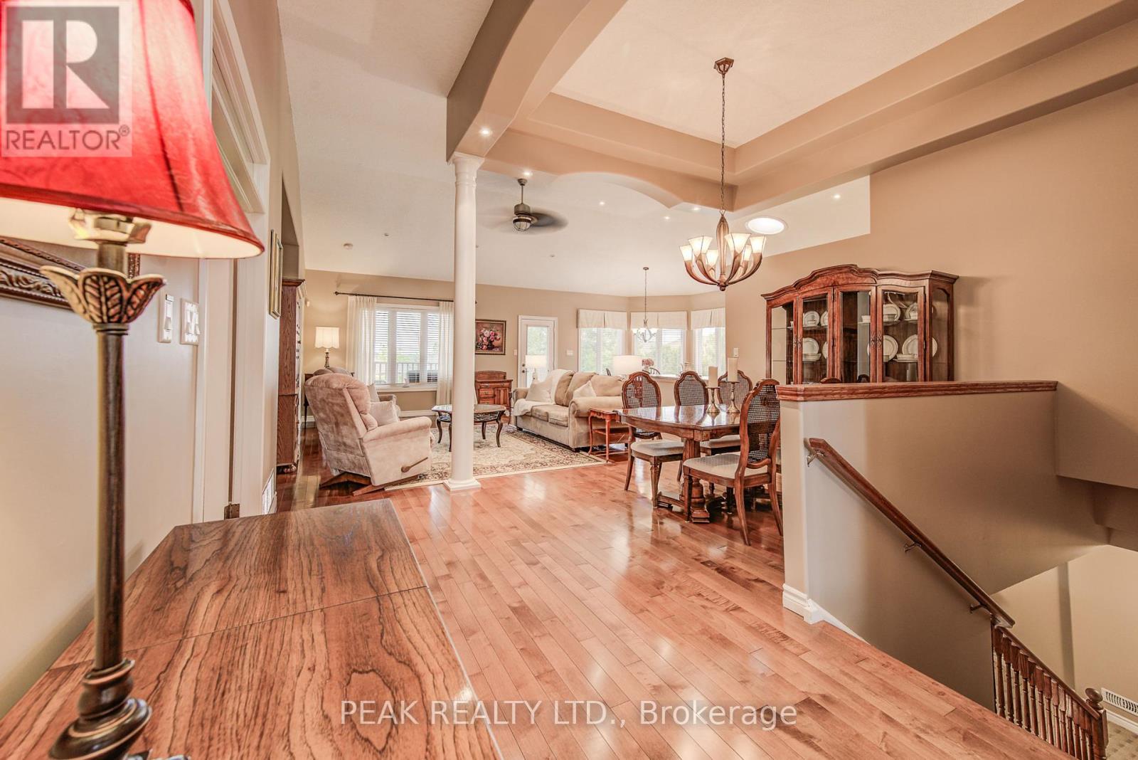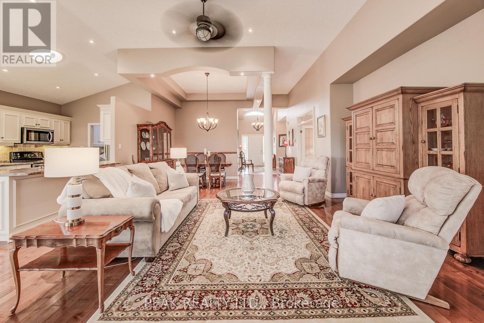 Discover the allure of 116 Stonecroft Way, a beautifully appointed brick bungalow in Stonecroft, New Hamburg's esteemed adult lifestyle community. This home offers the best of both worlds: exceptional privacy on a large, mature lot, combined with immediate access to the community's impressive amenities. Step inside to an inviting open-concept living and dining area, adorned with gleaming hardwood floors. The main level provides convenience with 2 bedrooms and a versatile den. The kitchen, open to the dinette and partially to the living area, features a walk-out to a spacious covered deck with gas BBQ line, ideal for outdoor enjoyment. The finished lower level significantly expands your living space, boasting a generous rec room with a gas fireplace and a 3-piece bath, complete with a walk-out to a lower-level patio. There's also abundant unfinished space, perfect for an additional bedroom or hobby area. This home comes loaded with upgrades, including vaulted ceilings, large bright windows, pot lights, crown moldings, updated insulation, and newer mechanicals and quality roof. As part of this private condominium community, you'll be steps away from the 18,000 sq. ft. recreation centre, offering an indoor pool, fitness room, tennis courts, and 5 km of walking trails. Enjoy quick access to KW, the 401, Stratford, and all major amenities, health care facilities and Theatre and cultural offerings of the area. This exceptional property truly has it all! (id:4555)