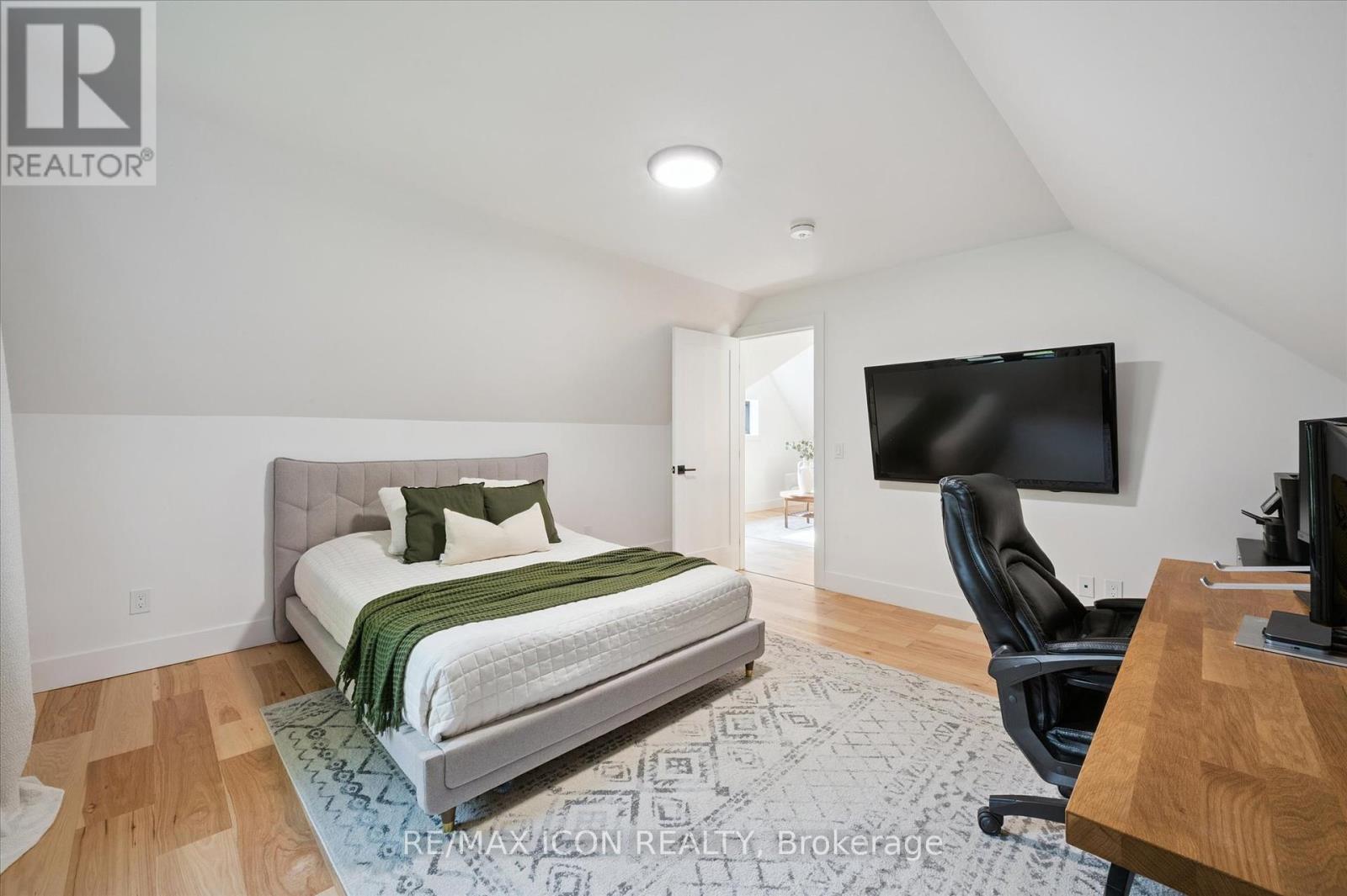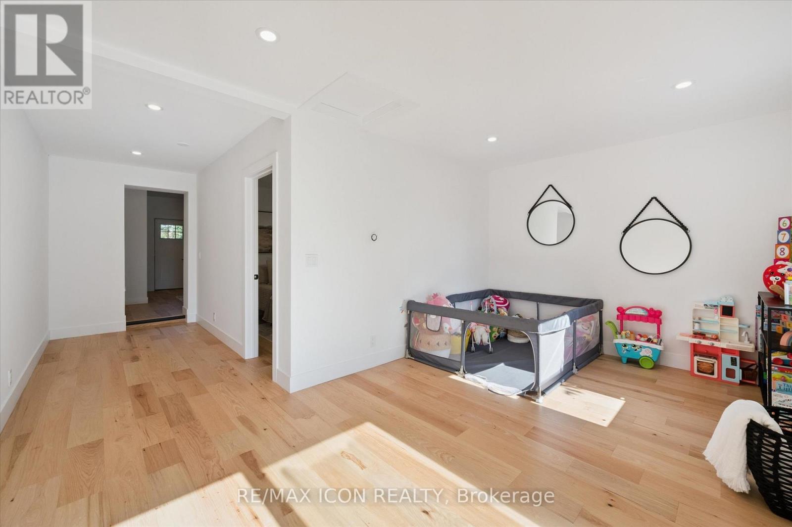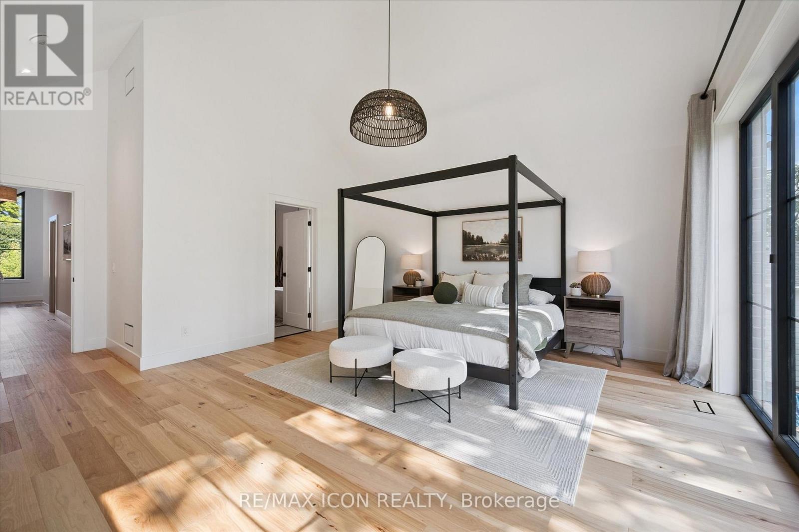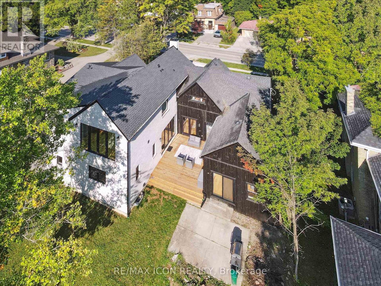 Welcome to 413 Huron Road in charming New Hamburg! A truly exceptional 5-bedroom, 4-bathroom home offering over 4,400 sq. ft. of finishedliving space, where thoughtful design meets high-end finishes and timeless craftsmanship. The exterior blends timeless materials like stone,brick, and barn board for a striking curb appeal, complemented by a concrete driveway with integrated drainage and underground downspoutmanagement. Inside, the home is flooded with natural light thanks to oversized Raven European tilt/turn windows, which beautifully highlight theneutral tones, organic finishes, and natural hickory engineered hardwood throughout. The heart of the home is the handcrafted maple kitchenand adjoining butlers pantry, featuring a Monogram gas oven/range, built-in 36 Fisher & Paykel fridge and dishwasher, an apron sink, andample storage, ideal for everyday living and entertaining alike. A separate entrance leads to a private granny flat, perfect for multi-generationalliving or guests. Comfort is maximized with multi-zone climate control, a hot water recirculation line for instant hot water to the second-floorbathrooms, and a large Lennox natural gas fireplace for cozy evenings. Additional features include a custom vanity in the foyer bath, VIGOfaucets, Red Oak stairs, and a master suite boasting oversized windows and Italian tile finishes. The home is equipped with a 200 AMP electricalpanel, water softener, and plenty of storage including a large shed. Outside, enjoy an incredible entertaining space with a wood deck and anexpansive grass area set on 3/4 acre in town perfect for relaxing or hosting gatherings. This is a rare blend of luxury, functionality, andthoughtful design in a peaceful, sought-after location. (id:4555)