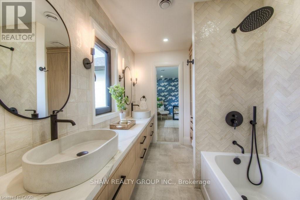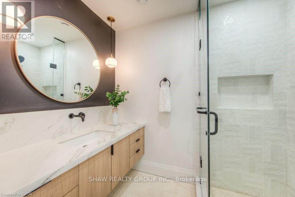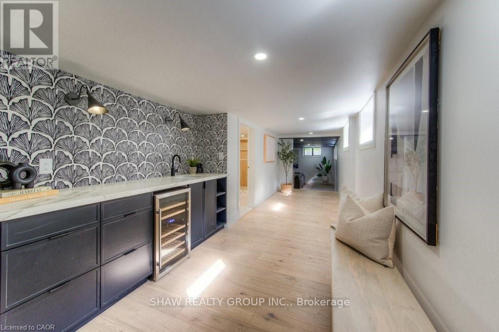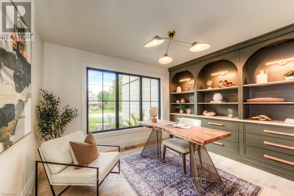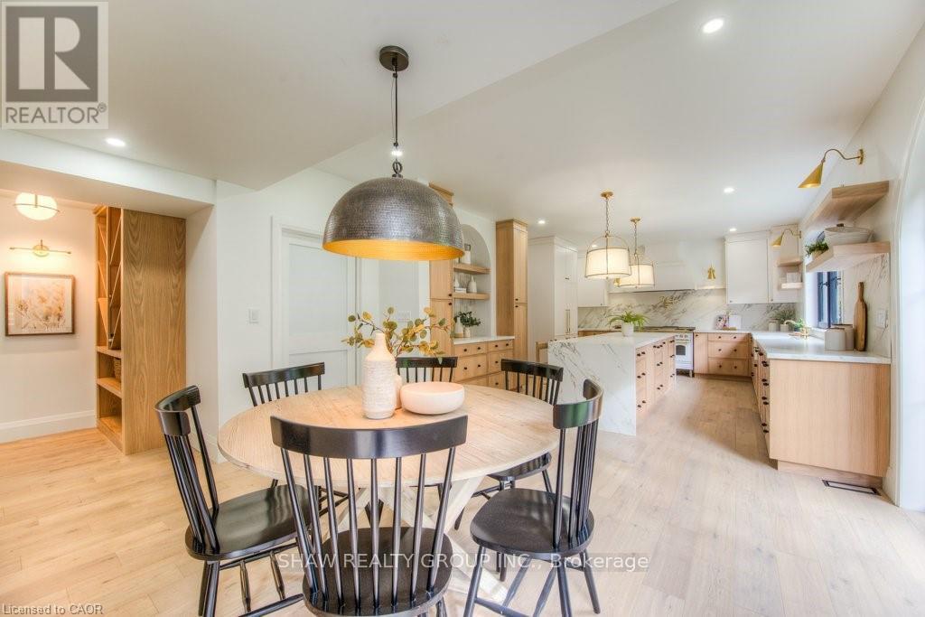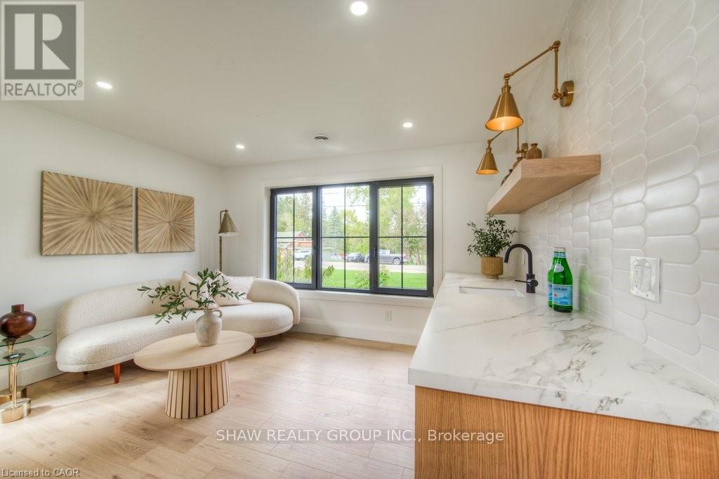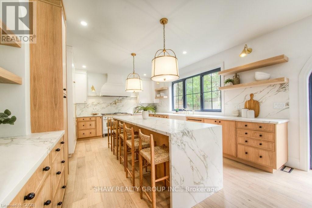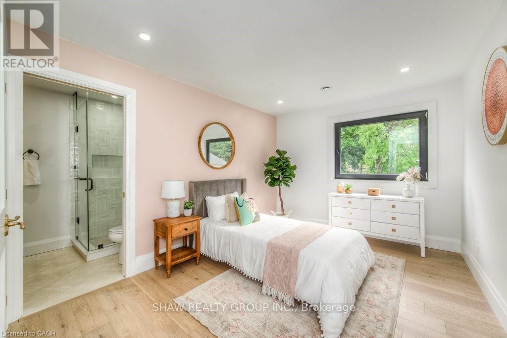Welcome to a newly constructed luxury estate with over 6,500 sq ft of professionally designed space on a rare 107 146 ft private lot, minutes from Kitchener-Waterloo. Built in 2023 and curated by Lush Designs, this architectural residence blends timeless European-inspired design with modern family functionality - delivering a level of craftsmanship and scale rarely available in the region. From the moment you enter, soaring ceilings, expansive sightlines, and oversized triple-glazed European windows create an atmosphere of light, openness, and luxury. The main level is designed for both elegant entertaining and everyday living, featuring a grand open-concept layout anchored by a striking double-sided Roman clay fireplace connecting the living and dining spaces. The chef's kitchen is a showpiece, complete with custom white oak cabinets, a 10-ft double waterfall porcelain island, paneled high-end appliances, walk-in prep pantry, and a designer range - seamlessly blending beauty with performance. Upstairs, the home offers a spacious and thoughtfully designed second level with five large bedrooms, each with ensuite access, a luxurious primary retreat featuring cathedral ceilings, fireplace, spa-like ensuite, and a generous walk-in closet. A bonus flex living area provides space for a family lounge, home gym, or office. The fully finished lower level adds over 1,600 sq ft of additional space, including a media zone, wet bar, guest area, and flexible recreation spaces - ideal for multi-generational living/entertaining. Set on a premium lot with a long private driveway, double garage, and room for outdoor amenities such as a pool or cabana, this property offers a combination of estate-style privacy with unmatched proximity to urban conveniences, minutes from Highway 7/8, shopping, universities, and Waterloo's tech hub. A truly exceptional offering for buyers seeking space, design excellence, and long-term value in one of the region's most desirable locations. (id:4555)