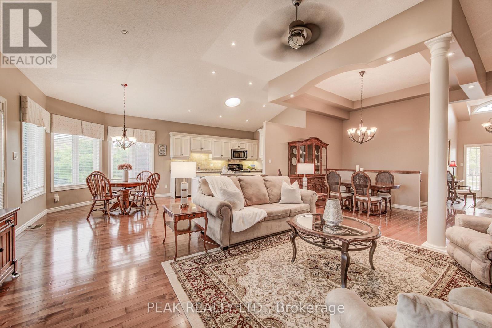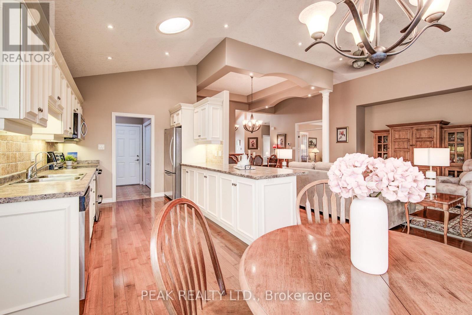 Discover the allure of 116 Stonecroft Way, a beautifully appointed brick bungalow in Stonecroft, New Hamburg's esteemed adult lifestyle community. This home offers the best of both worlds: exceptional privacy on a large, mature lot, combined with immediate access to the community's impressive amenities. Step inside to an inviting open-concept living and dining area, adorned with gleaming hardwood floors. The main level provides convenience with 2 bedrooms and a versatile den. The kitchen, open to the dinette and partially to the living area, features a walk-out to a spacious covered deck with gas BBQ line, ideal for outdoor enjoyment. The finished lower level significantly expands your living space, boasting a generous rec room with a gas fireplace and a 3-piece bath, complete with a walk-out to a lower-level patio. There's also abundant unfinished space, perfect for an additional bedroom or hobby area. This home comes loaded with upgrades, including vaulted ceilings, large bright windows, pot lights, crown moldings, updated insulation, and newer mechanicals and quality roof. As part of this private condominium community, you'll be steps away from the 18,000 sq. ft. recreation centre, offering an indoor pool, fitness room, tennis courts, and 5 km of walking trails. Enjoy quick access to KW, the 401, Stratford, and all major amenities, health care facilities and Theatre and cultural offerings of the area. This exceptional property truly has it all! (id:4555)