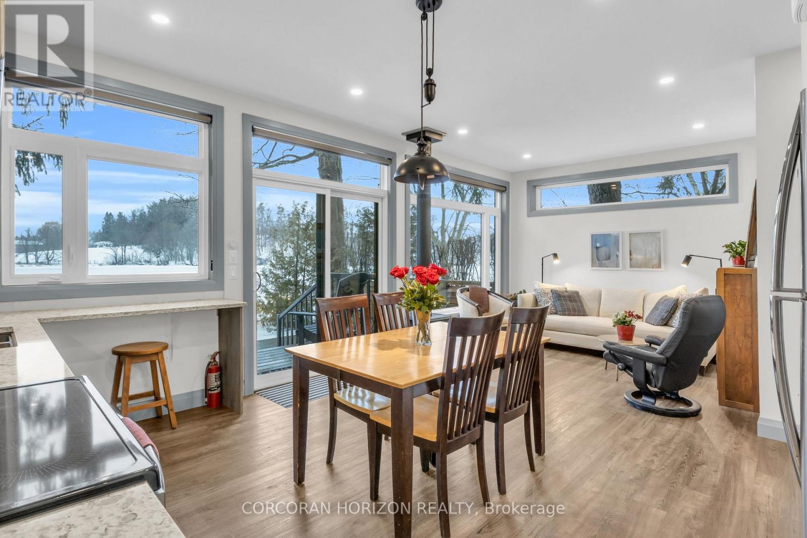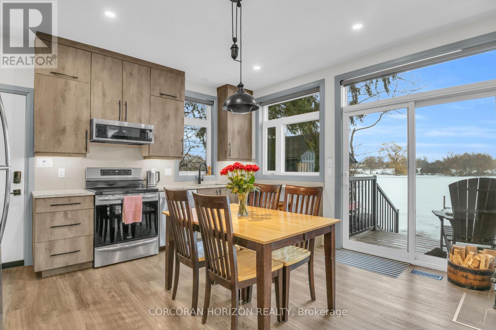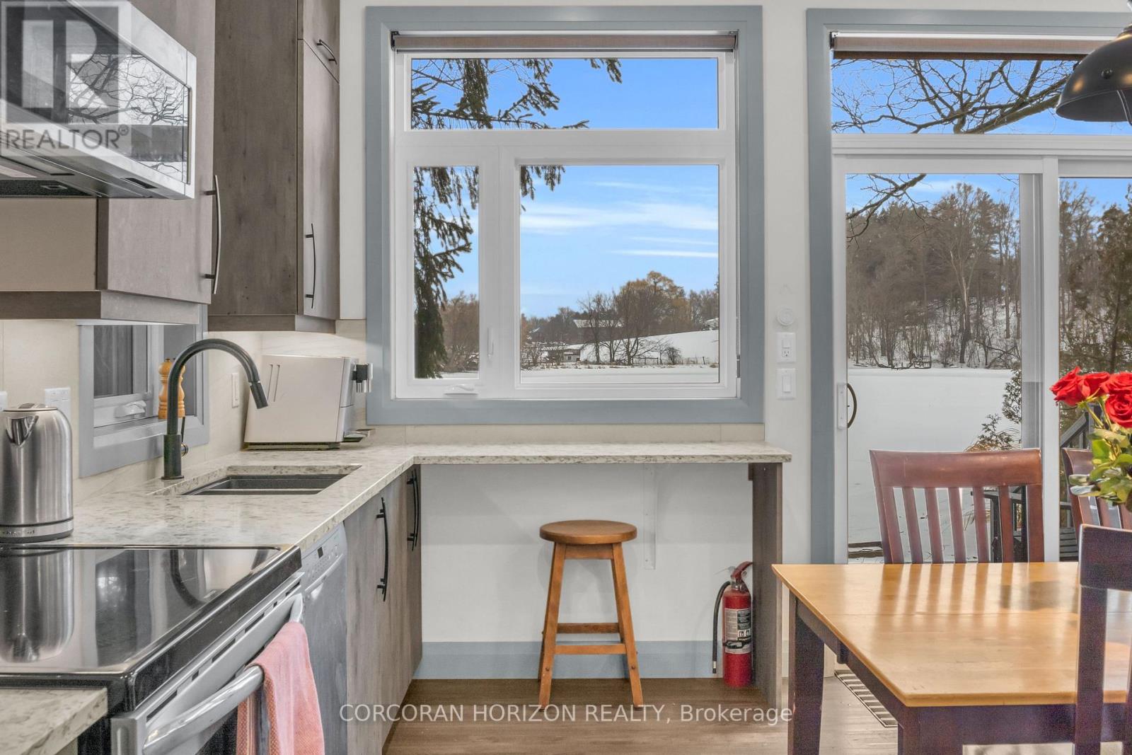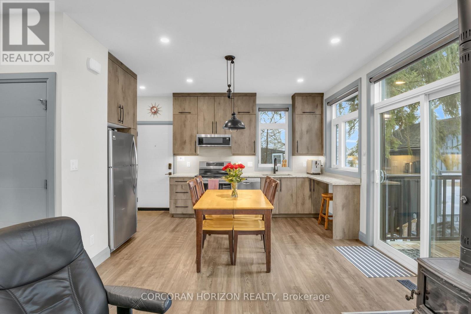 Set along the shores of Alder Lake in the charming community of New Dundee, this beautifully renovated 2 bedroom home offers a peaceful waterfront lifestyle with stunning views and thoughtful updates throughout. Renovated from top to bottom, the home blends modern finishes with a warm, welcoming feel, creating a comfortable retreat just a short drive from Kitchener, Waterloo, and Cambridge. The bright kitchen is both stylish and functional, featuring granite countertops, an induction stove, an undermount sink, and a cozy bar seating area where you can take in the picturesque lake views. The living room is equally inviting, highlighted by large windows overlooking the water and a wood burning stove that adds warmth and character for relaxing evenings. A sliding door leads directly to the back deck, providing the perfect space for entertaining, outdoor dining, or enjoying a quiet morning coffee by the lake. Both bedrooms are filled with natural light and offer comfortable space, while the beautifully updated bathroom features a glass tiled shower and convenient in-suite laundry. Adding even more flexibility, the property includes a separate studio structure that can easily function as a third bedroom, guest space, home office, or creative studio. Outside, the setting truly shines. Enjoy sweeping lake views and direct waterfront access complete with your own dock, perfect for fishing, relaxing by the water, or taking in the natural surroundings. Located in the welcoming community of New Dundee, this property offers the tranquility of lakeside living while still being within easy driving distance of everyday amenities. (id:4555)