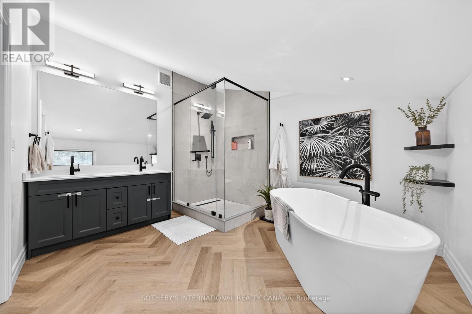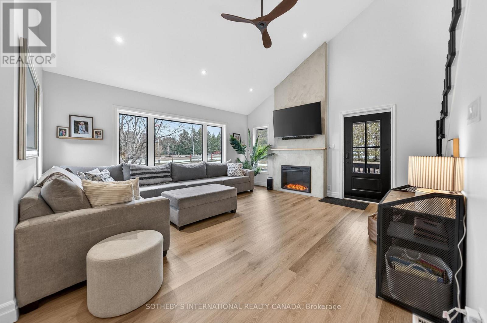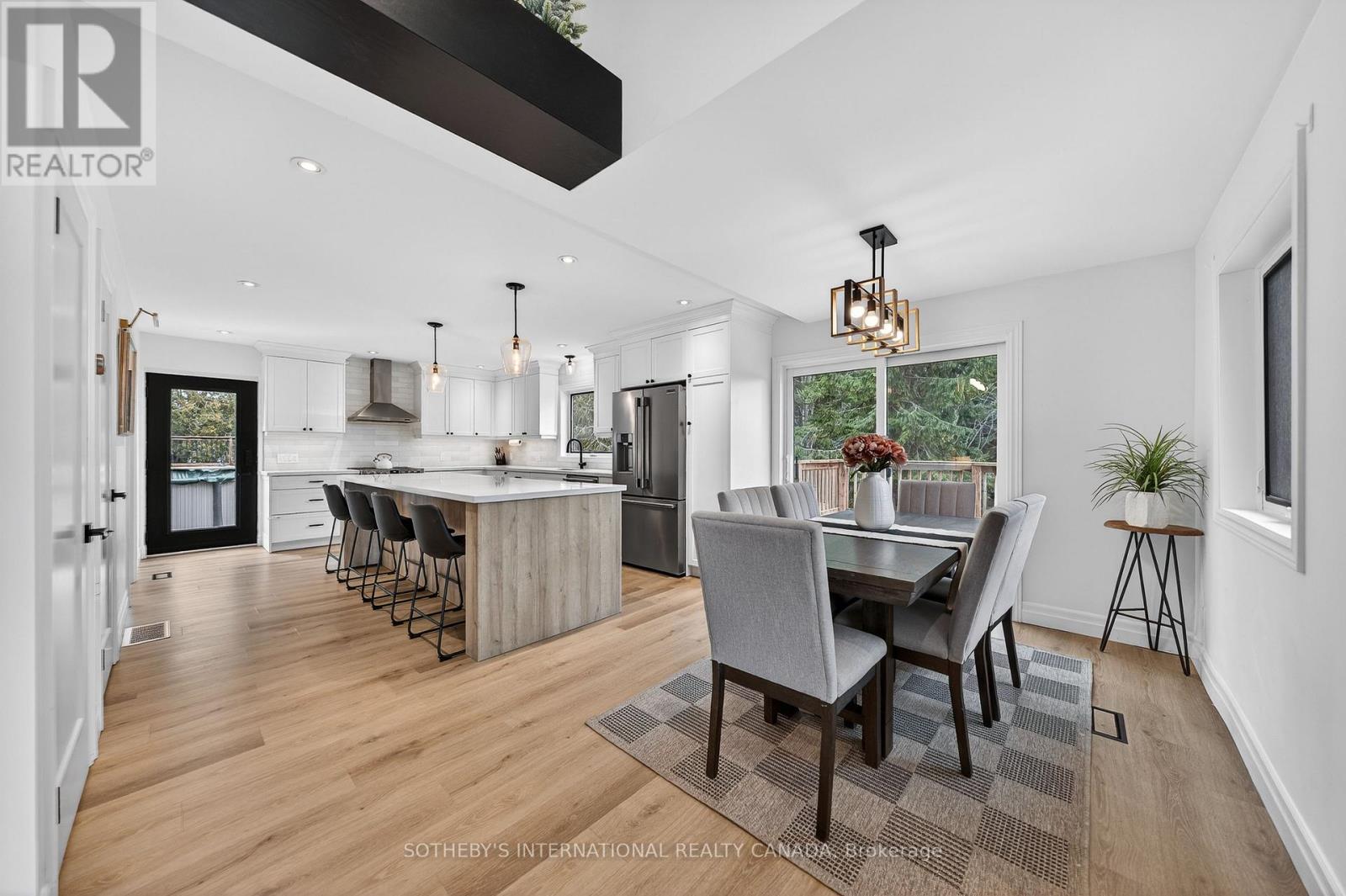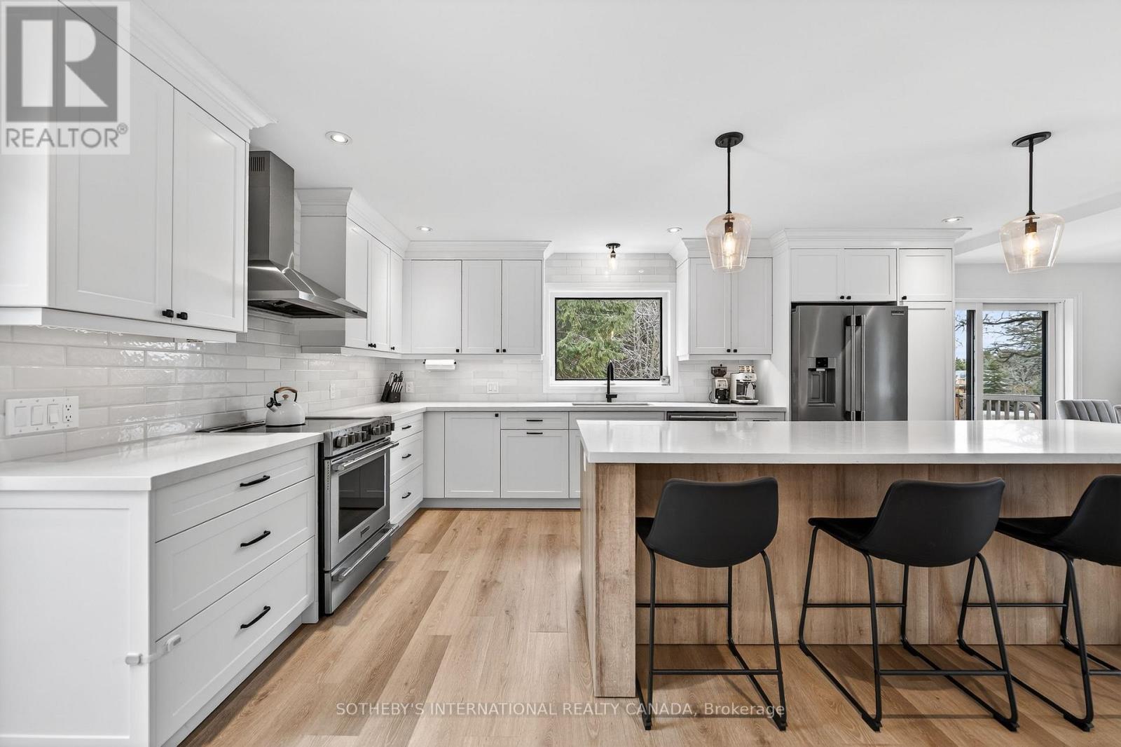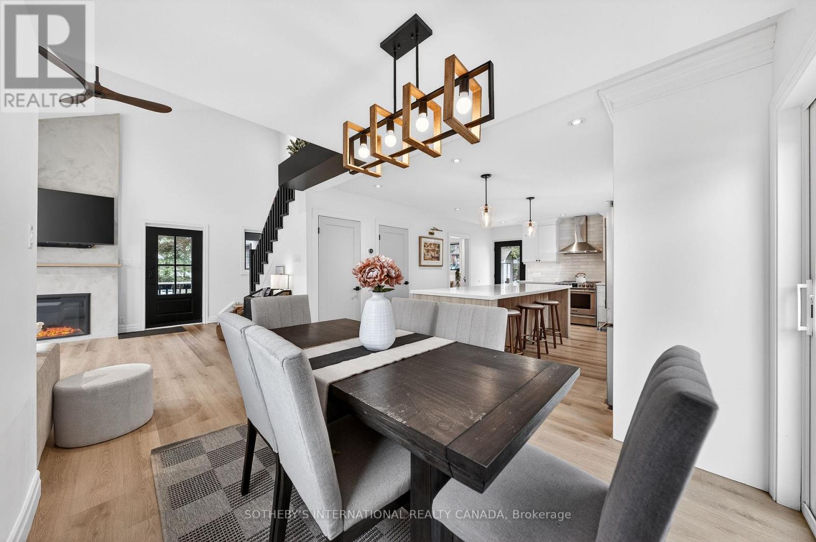 Welcome to 1920 37 Line in the quaint township of New Hamburg. This stunning two-storey home is surrounded by serene nature, old growth trees, trails, and a private lake Offering over 1,900 sq. ft. of thoughtfully finished and intentionally updated living space. With soaring ceilings, the bright and airy living room brings plenty of natural light, while the ambiance of a cozy fireplace warms- perfect for hosting family and friends. The show stopping custom kitchen features a 10 foot island, an exceptional prep space with bar seating on both sides, stainless steel appliances, subway tile backsplash, modern fixtures and loads of cabinetry for storage. The dining area offers glass sliding doors leading you to the side deck making barbecuing effortless or simply your favourite place to enjoy a morning coffee. You will also find a laundry/mudroom, large pantry, a three piece bathroom, a walk-out to the rear yards, and side door entry to the garage for your convenience. The grand staircase leads you to the upper level with a luxurious primary retreat, featuring a spa-like five piece ensuite and spacious walk-in closet. Two additional generously sized bedrooms and a beautiful four piece bathroom to complete the upper floor. The finished lower level adds additional living space with a walk-out and wood fireplace. This property features 0.465 acres with an expansive driveway for 15+ vehicles, 30x20 heated workshop offering a finished rec room and wood stove, and an above ground pool creating the perfect cottage getaway without having to leave home and nearby amenities. Extensively updated, completely turnkey and thoughtfully designed, this home delivers modern finishes, exceptional space and flexibility. This spectacular move-in ready home delivers privacy, effortless living and elevated entertaining. Notable updates include: furnace and water heater 2025, water softener 2023, pool pump and filter 2025, roof 2021 windows 2022, exterior doors 2022. (id:4555)
