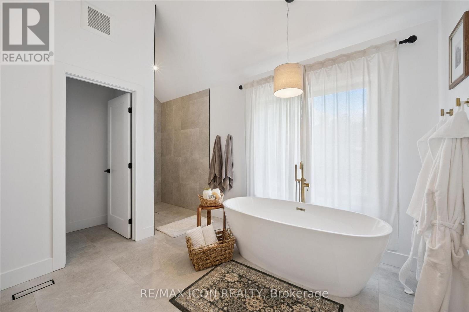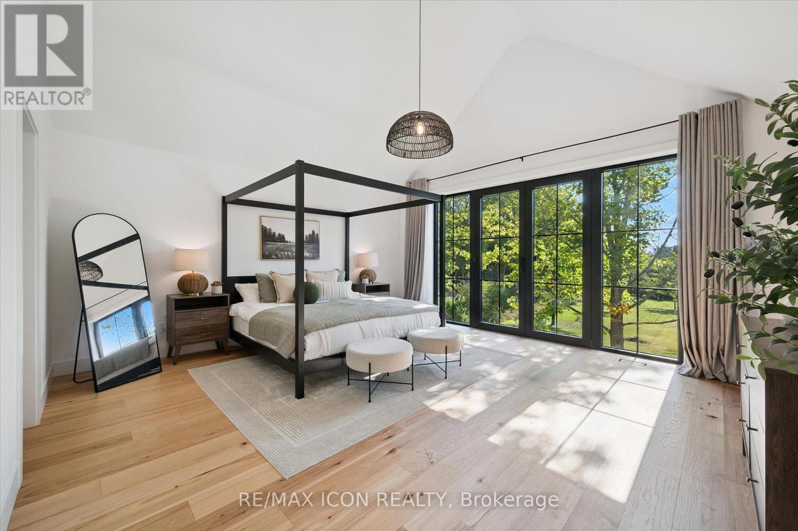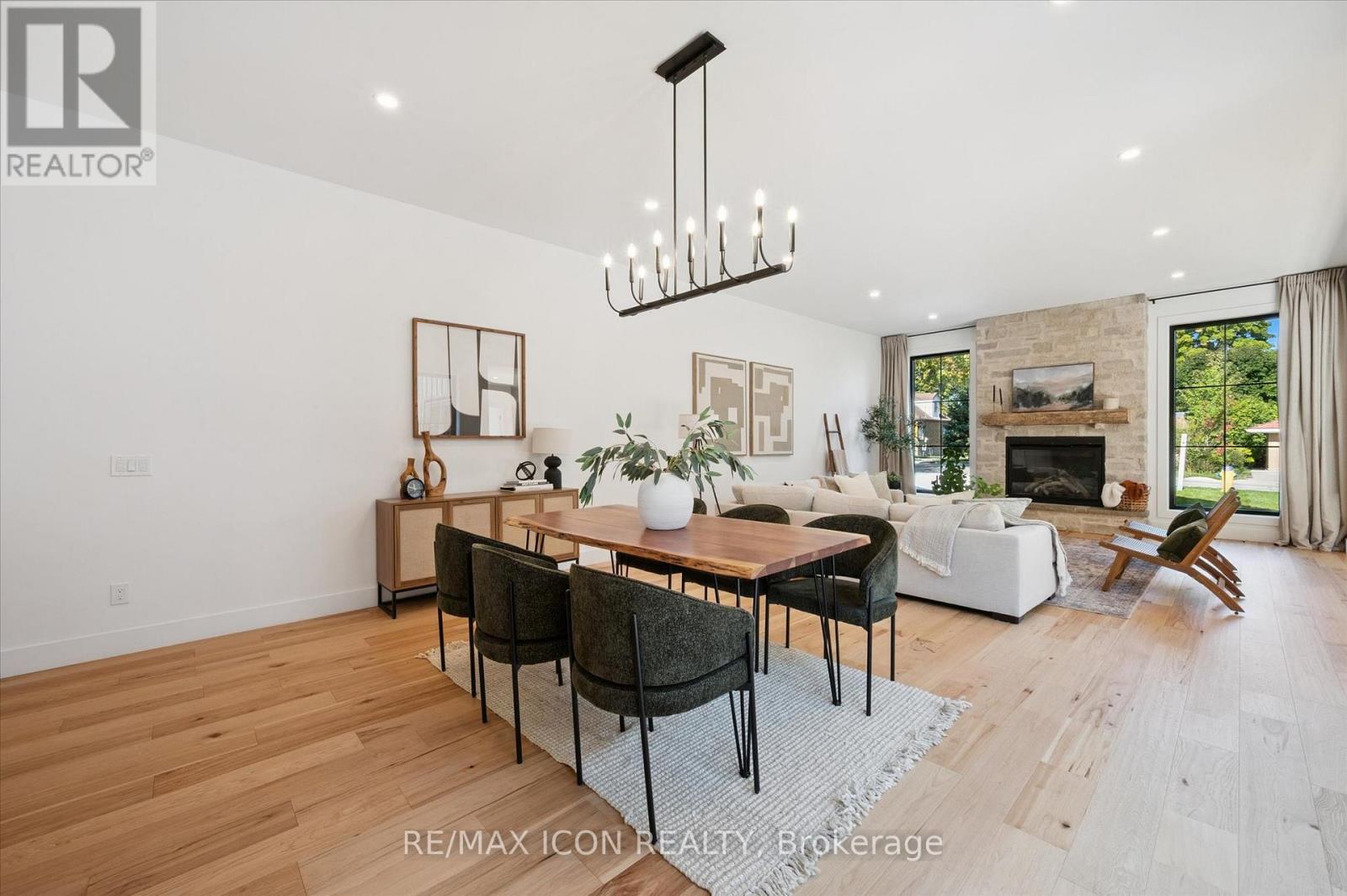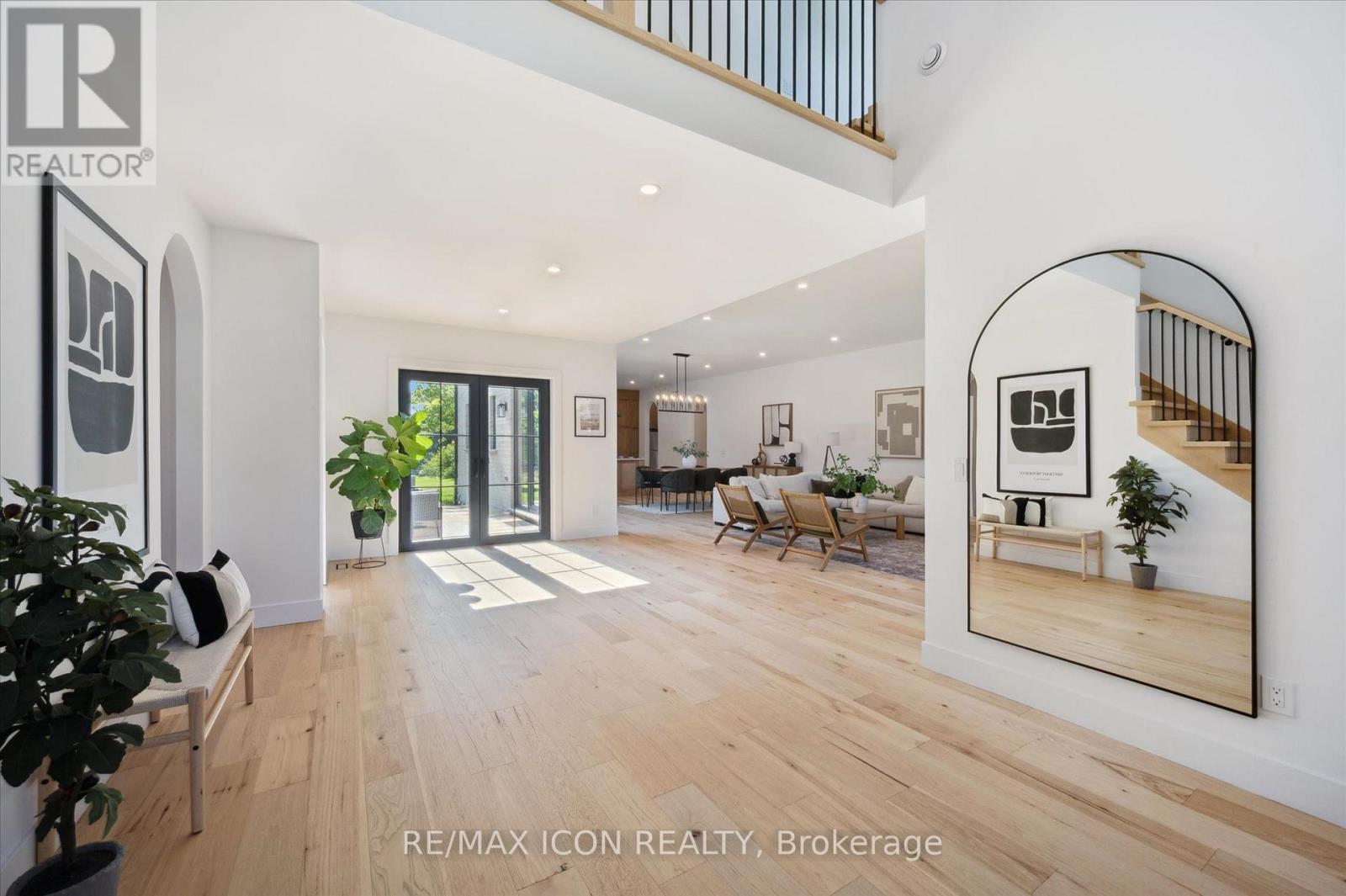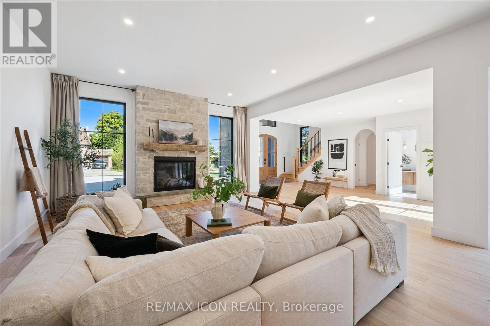 Welcome to 413 Huron Road in charming New Hamburg! A truly exceptional 5-bedroom, 4-bathroom home offering over 4,400 sq. ft. of finishedliving space, where thoughtful design meets high-end finishes and timeless craftsmanship. The exterior blends timeless materials like stone,brick, and barn board for a striking curb appeal, complemented by a concrete driveway with integrated drainage and underground downspoutmanagement. Inside, the home is flooded with natural light thanks to oversized Raven European tilt/turn windows, which beautifully highlight theneutral tones, organic finishes, and natural hickory engineered hardwood throughout. The heart of the home is the handcrafted maple kitchenand adjoining butler's pantry, featuring a Monogram gas oven/range, built-in 36" Fisher & Paykel fridge and dishwasher, an apron sink, andample storage, ideal for everyday living and entertaining alike. A separate entrance leads to a private granny flat, perfect for multi-generationalliving or guests. Comfort is maximized with multi-zone climate control, a hot water recirculation line for instant hot water to the second-floorbathrooms, and a large Lennox natural gas fireplace for cozy evenings. Additional features include a custom vanity in the foyer bath, VIGOfaucets, Red Oak stairs, and a master suite boasting oversized windows and Italian tile finishes. The home is equipped with a 200 AMP electricalpanel, water softener, and plenty of storage including a large shed. Outside, enjoy an incredible entertaining space with a wood deck and anexpansive grass area set on 3/4 acre in town perfect for relaxing or hosting gatherings. This is a rare blend of luxury, functionality, andthoughtful design in a peaceful, sought-after location. (id:4555)