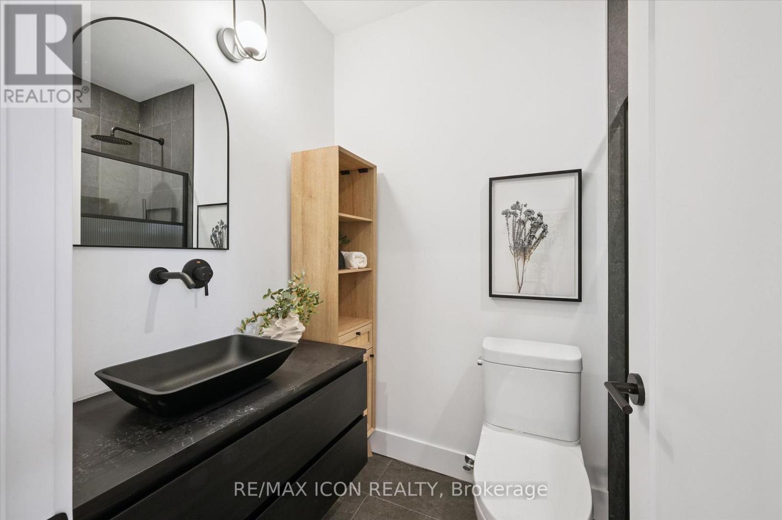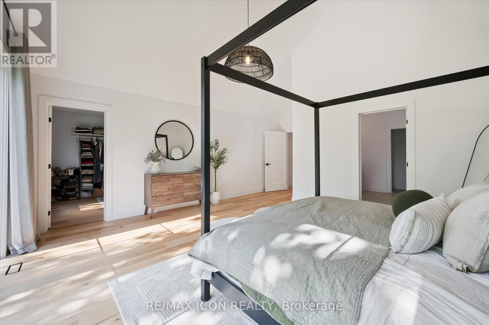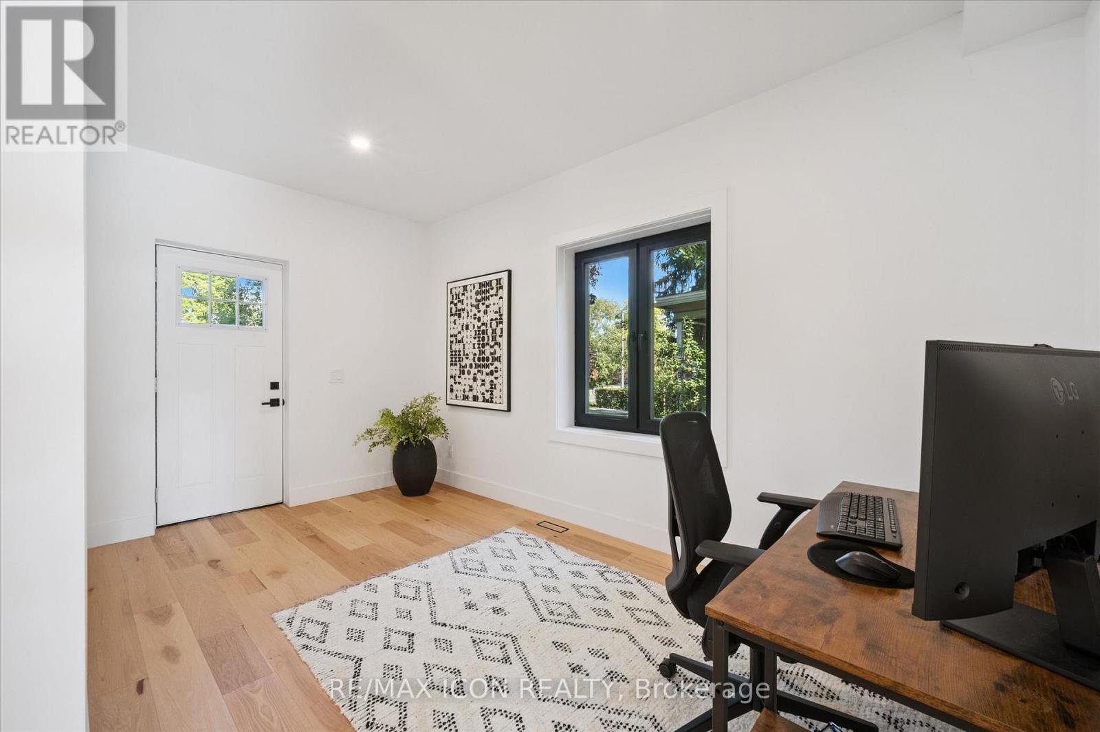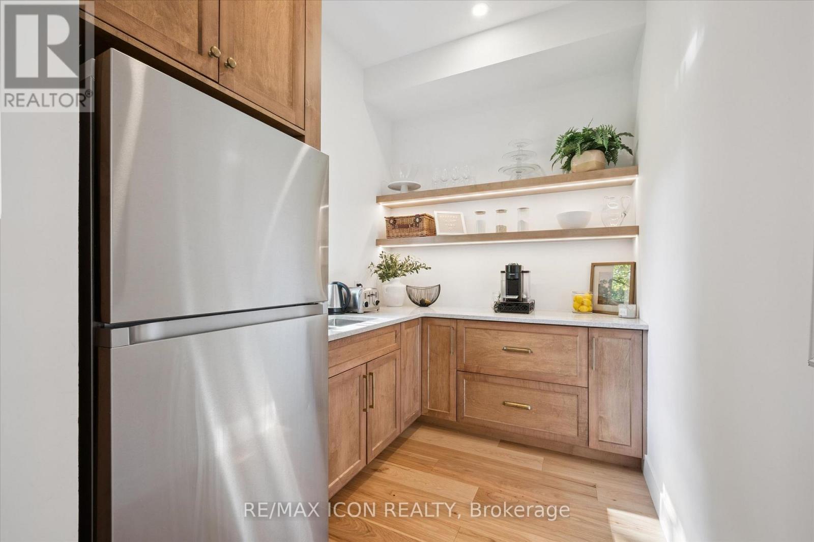 Welcome to 413 Huron Road in charming New Hamburg! A truly exceptional 5-bedroom, 4-bathroom home offering over 4,400 sq. ft. of finishedliving space, where thoughtful design meets high-end finishes and timeless craftsmanship. The exterior blends timeless materials like stone,brick, and barn board for a striking curb appeal, complemented by a concrete driveway with integrated drainage and underground downspoutmanagement. Inside, the home is flooded with natural light thanks to oversized Raven European tilt/turn windows, which beautifully highlight theneutral tones, organic finishes, and natural hickory engineered hardwood throughout. The heart of the home is the handcrafted maple kitchenand adjoining butler's pantry, featuring a Monogram gas oven/range, built-in 36" Fisher & Paykel fridge and dishwasher, an apron sink, andample storage, ideal for everyday living and entertaining alike. A separate entrance leads to a private granny flat, perfect for multi-generationalliving or guests. Comfort is maximized with multi-zone climate control, a hot water recirculation line for instant hot water to the second-floorbathrooms, and a large Lennox natural gas fireplace for cozy evenings. Additional features include a custom vanity in the foyer bath, VIGOfaucets, Red Oak stairs, and a master suite boasting oversized windows and Italian tile finishes. The home is equipped with a 200 AMP electricalpanel, water softener, and plenty of storage including a large shed. Outside, enjoy an incredible entertaining space with a wood deck and anexpansive grass area set on 3/4 acre in town perfect for relaxing or hosting gatherings. This is a rare blend of luxury, functionality, andthoughtful design in a peaceful, sought-after location. (id:4555)