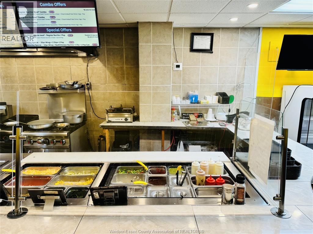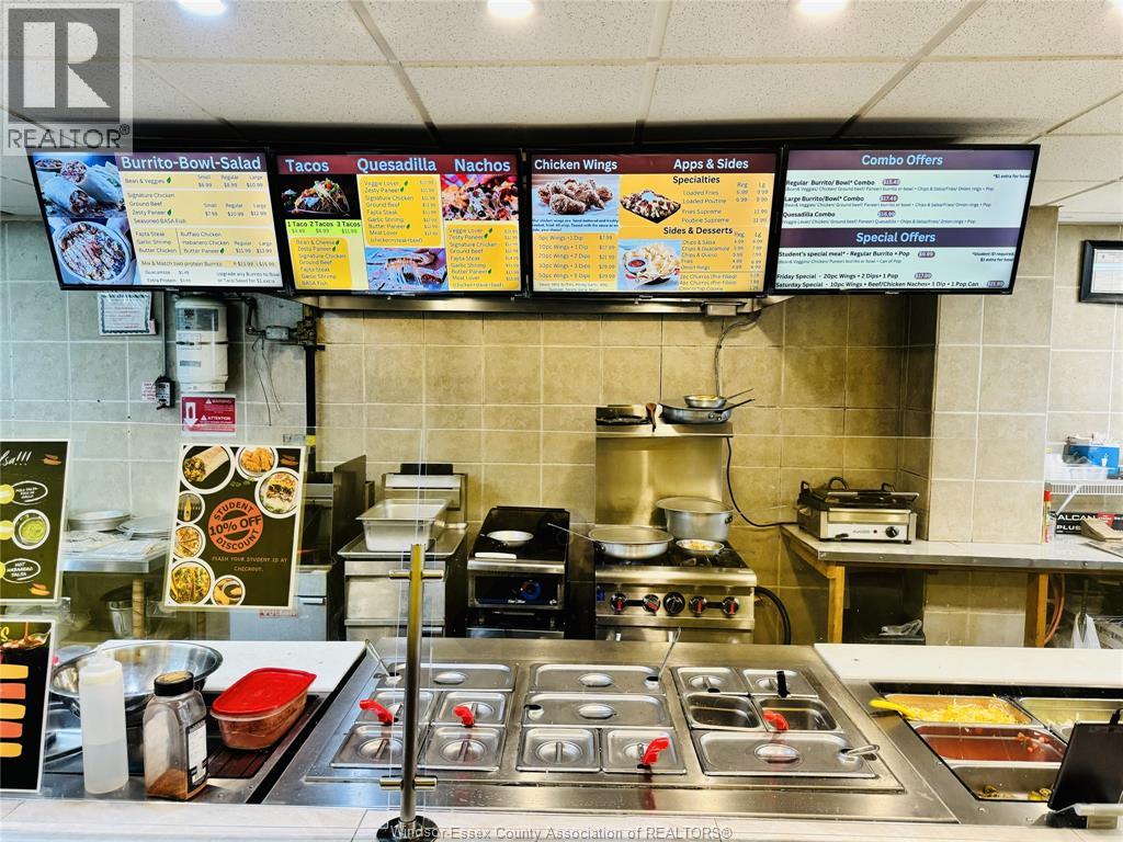 Fantastic opportunity to own a turnkey restaurant in a prime, high-traffic location just one block from the University of Windsor! Surrounded by busy businesses and student housing, this spot offers unbeatable visibility and foot traffic. Up and running since 2007, this popular Mexican restaurant can be easily converted to any cuisine or concept. Recent updates include: renovated washrooms, flooring, paint, TV menus, hood fan, newer HVAC, and plexiglass sneeze guards. On a major bus route with steady customer flow -- bring your vision and make this thriving location your own! Large outdoor signage. Space has been fully inspected and certified by the Fire Marshall. Price includes chattels and inventory (available). Owner willing to train with accepted agreement. Business for sale only. Please phone REALTORĀ® asap for your own showing. (id:4555)