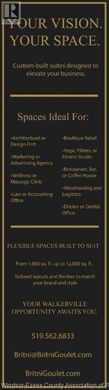 STEP INTO POSSIBILITY AT 1519 WYANDOTTE - WHERE YOUR NEXT CHAPTER IN WALKERVILLE BEGINS. FROM INTIMATE 1,000 SF OPPORTUNITIES, EVERY SQUARE FOOT IS A BLANK CANVAS WAITING FOR YOUR TOUCH. IMAGINE YOUR DREAM CONCEPT UNFOLDING HERE, A SPACE DESIGNED ENTIRELY AROUND YOUR VISION AND PURPOSE. WITH FRESH EXTERIOR UPDATES COMING IN 2026, THIS PROPERTY PROMISES NOT JUST POTENTIAL, BUT TRANSFORMATION. LET'S TALK IDEAS, DESIGN INSPIRATION, AND HOW TO MAKE YOUR VISION REALITY. THE NEW OWNER—ALREADY AN ESTABLISHED WALKERVILLE PROPERTY OWNER—IS POURING RESOURCES INTO TRANSFORMING BOTH THE INSIDE AND OUTSIDE OF THE BUILDING, CREATING A BOLD DETROIT-WALKERVILLE VIBE. CONTACT LS TO DISCUSS OPPORTUNITIES! (id:4555)