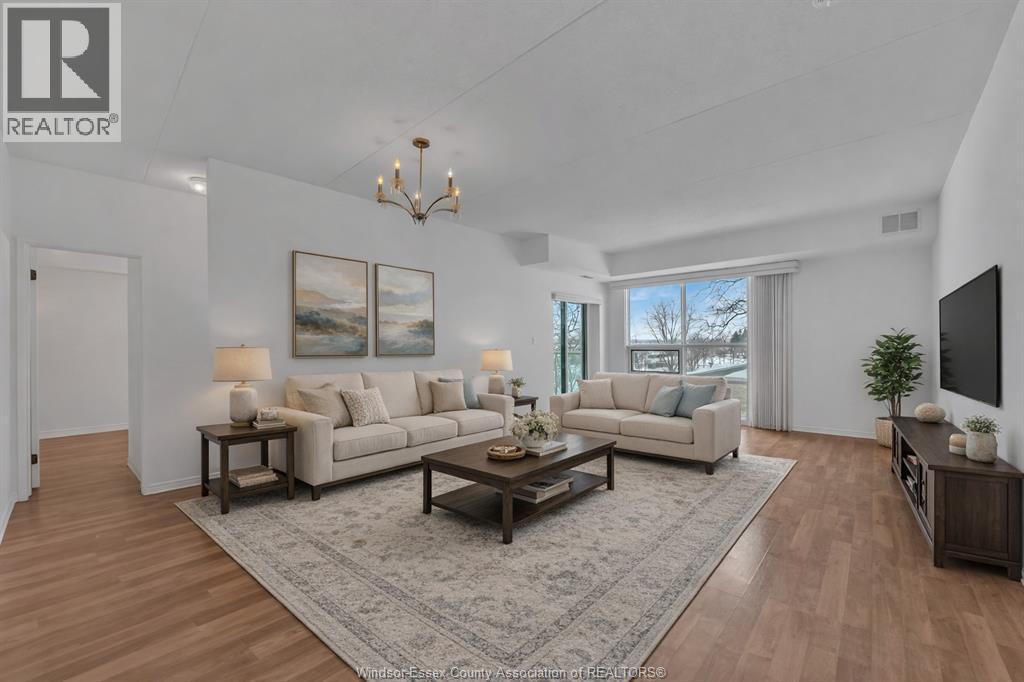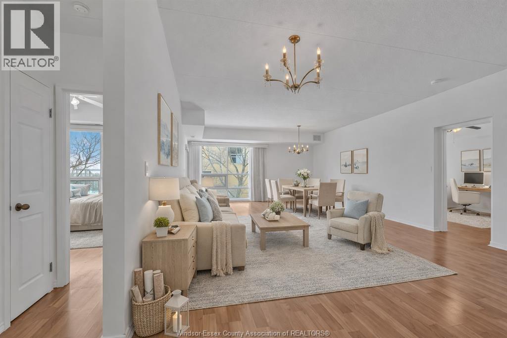 This spacious and bright 2-bedroom, 2-bathroom condominium is located in The Pinnacle boasting nearly 1200 sq ft , The pinnacle building one of Windsor’s most prestigious and highly sought-after buildings, recognized as one of the finest residences in the city. Set along the coveted Riverside Drive, the unit offers beautiful river views in a premier location. Directly across the street, a tranquil escape with its manicured grounds and the iconic Charles Brooks Peace Fountain floating on the Detroit River. The best of East Windsor’s amenities, dining, and everyday conveniences are all just moments away. The unit features a generous, well-appointed layout with in-suite laundry, updated flooring, fresh paint, and newer appliances included for added value. A private balcony showcases northeast-facing views of Windsor’s stunning riverfront—perfect for relaxing or entertaining. Residents of The Pinnacle enjoy an exceptional selection of amenities, including a fitness centre, indoor pool and sauna, meeting room, and secure underground parking complete with a car wash station. A rare opportunity to own a landmark building. Call today to book your private showing. SOME PHOTOS ARE VIRTUALLY STAGED (id:4555)