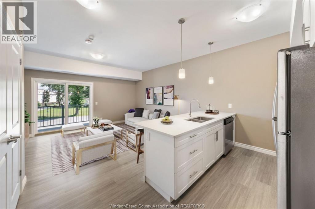 Experience luxury living in this 4Y Village South Condominium. This 2nd-floor, 1,200 sqft unit in a boutique 3-storey building offers 2 spacious bedrooms and 2 full bathrooms. Featuring an open-concept kitchen with contemporary cabinetry, quartz countertops, and an upgraded premium stainless steel appliance package, this home blends modern style with functionality. Enjoy hard-surface flooring throughout, a generous primary suite with walk-in closet and ensuite, in-suite laundry, and a private balcony with metal railing. Building amenities include elevator, accessible parking, and visitor parking. Price includes water, water heater, one parking space, and exterior/grounds maintenance. Conveniently located with a bus stop at Division & Woodward, walking distance to Devonwood Conservation Area, and just minutes from the new Battery Plant, Amazon warehouse, schools, parks, shopping, restaurants, Highway 401, and airport. (id:4555)