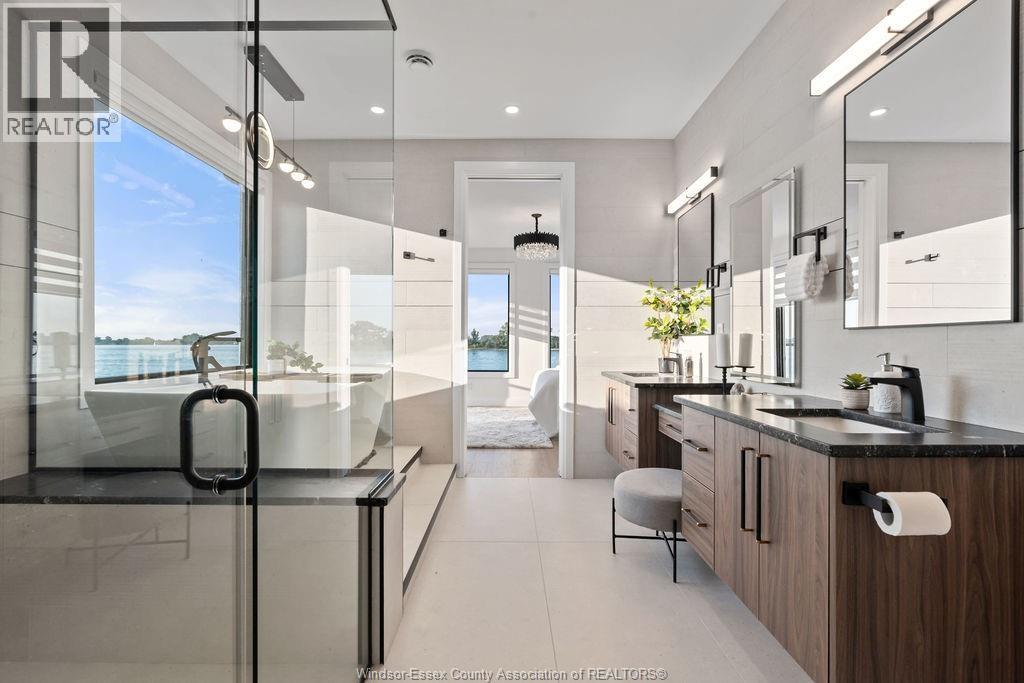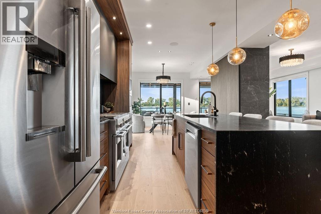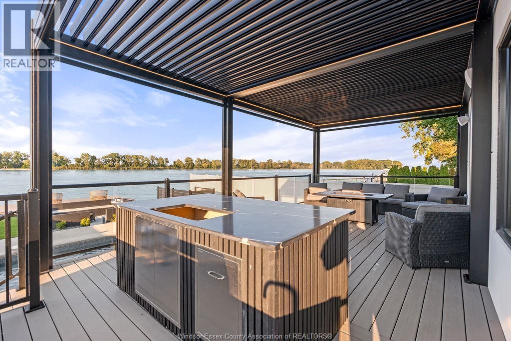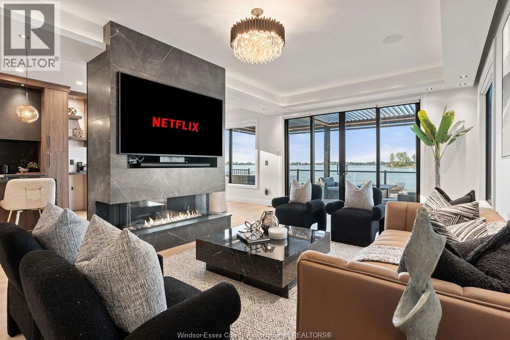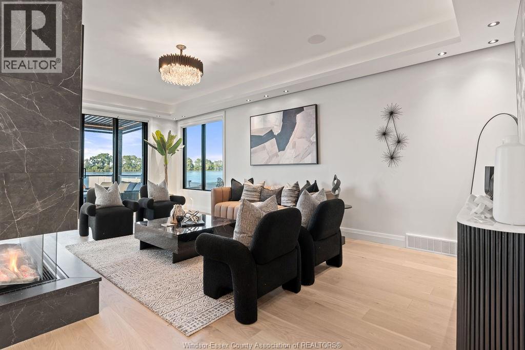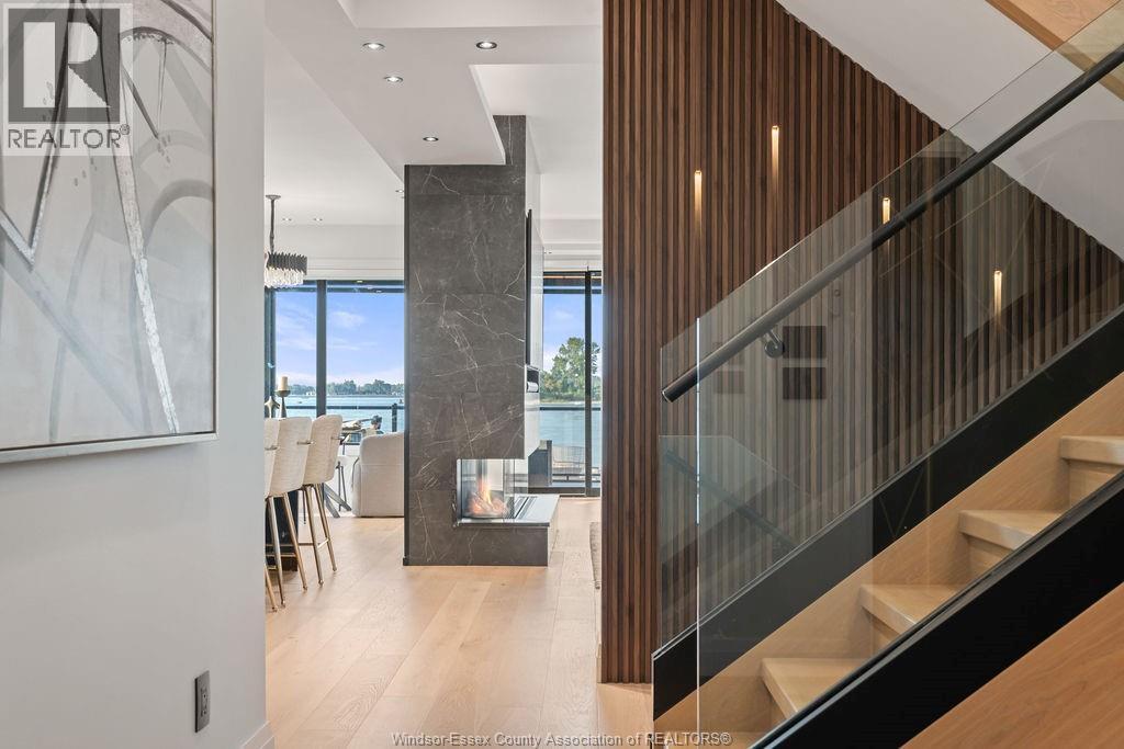 This custom-built luxury waterfront home offers 6 beds, 5 baths, and 3,760 sq.ft. of finished space (2600+1160) . Enter a grand foyer leading to a showpiece living room with 3D fireplace. The open-concept kitchen features leathered granite, high-end appliances, large island, and a butler's kitchen. Quartz counters throughout, Italian tile in all baths, and %"" engineered hardwood across all 3 levels. Built-in Sonos system, Auto blinds. Upstairs: 4 beds, 3 baths, including a primary suite with gas fireplace, balcony, walk-in, and spa-like en-suite. Lower level has private side entry from the waterfront park, 3rd kitchen, living area, 2 beds and full bath. Backyard oasis boasts 500+ sq.ft. composite decking, chef's BBQ kitchen, LED pergola with automated roof/screens, saltwater heated pool with 5 jets and waterfall, plus an inground firepit lounge. Private dock for boat or jet skis. In Riverside's most sought-after location. (id:4555)