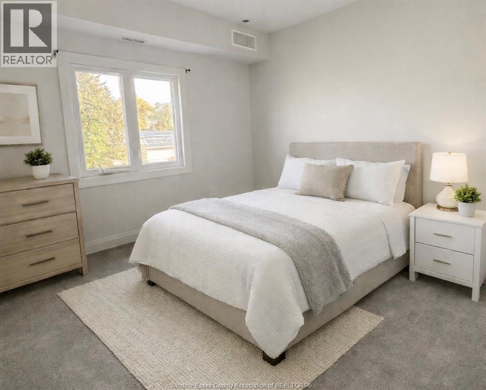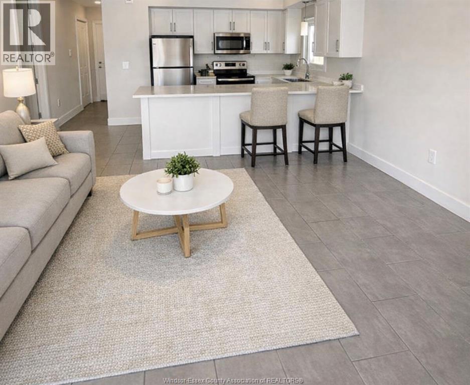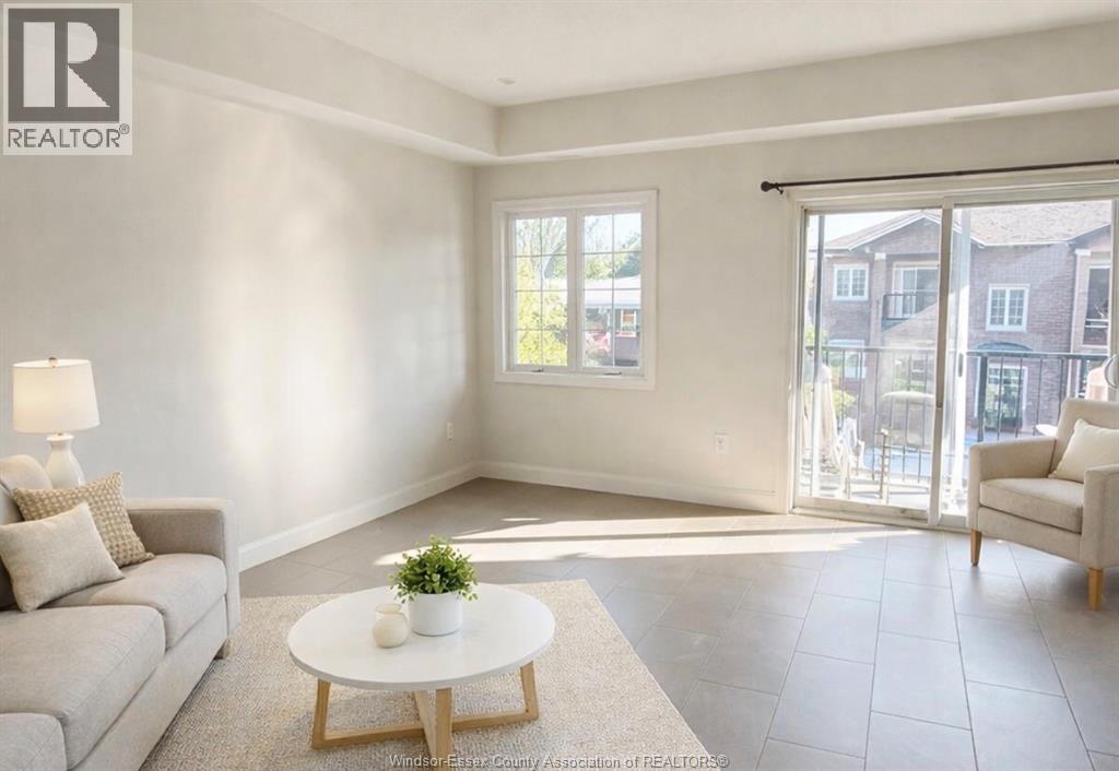 Top-floor modern condo just steps from Riverside Drive and scenic waterfront trails. This bright suite features soaring ceilings, oversized 8-ft interior doors, and an open-concept layout. Stylish kitchen with white cabinetry and quartz counters overlooks the living area finished with ceramic flooring. Comfortable bedrooms with carpet, including a primary bedroom with French doors to a private Juliet balcony. Enjoy your own balcony in this quiet Riverside neighbourhood. In-suite laundry and on-site parking included. (id:4555)