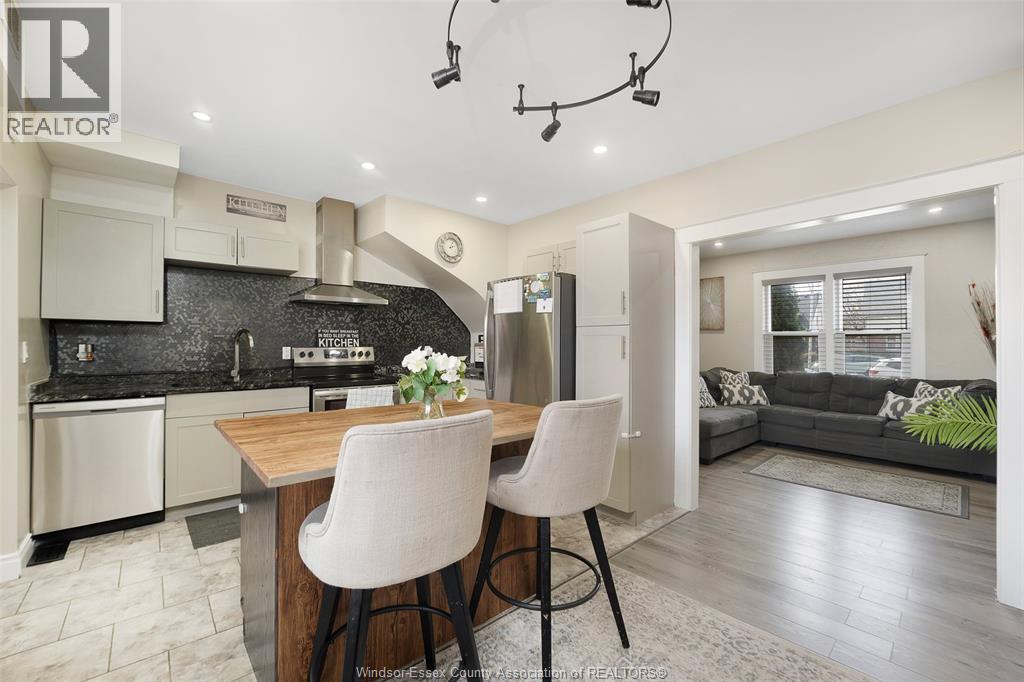 Beautifully renovated two-storey row unit located in the highly desirable Old Walkerville neighbourhood. The main level features new laminate flooring throughout the living and dining room. The living room is highlighted by a stylish wood slat feature wall w an electric fireplace insert, creating a warm and modern focal point. The space leads into a bright kitchen w an island, ss appliances and ceramic flooring, along w a convenient updated two-piece bathroom and main-floor laundry just off the kitchen. Upstairs offers laminate flooring throughout and 3 generously sized bedrooms, along with an updated four-piece bathroom. Major updates include some newer windows, furnace, A/C, kitchen, appliances, bathrooms and flooring (approx 6 yrs). The exterior includes newer siding on the one-car detached garage. Situated in the heart of Old Walkerville, this move-in ready home is within walking distance to trendy restaurants, shops and major bus routes. A fantastic opportunity to own a stylish updated home in one of the city's most sought-after neighbourhoods. This home is a must see. (id:4555)