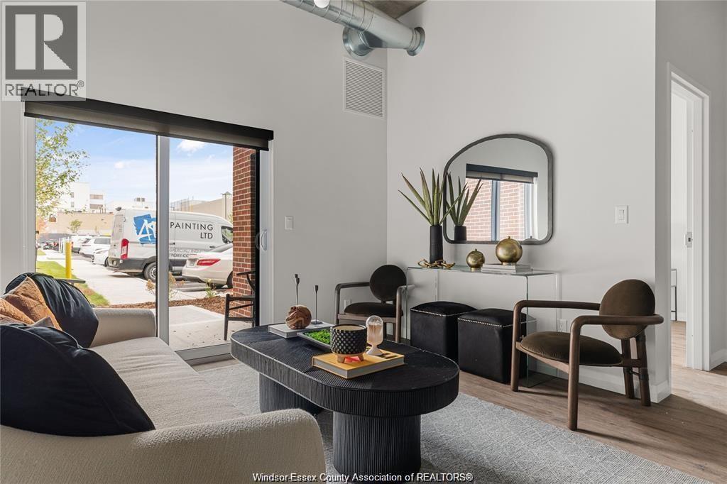 Experience luxury living at The Canadian at The Argyle in Walkerville, Windsor! This stunning one-bedroom loft blends modern elegance with industrial charm, featuring exposed ductwork ceilings and sleek quartz countertop. The accessible features are throughout this suite with a walk in shower, wall oven and accessible cook-top & sink. Enjoy the convenience of in-suite laundry, a stylish bathroom, and secure keyless entry with advanced security cameras for peace of mind. Located in the heart of Walkerville, you're just steps from trendy cafes, restaurants, and boutiques, offering a vibrant and sophisticated lifestyle. Plus utilities. Contact the listing agent for an application! (id:4555)
