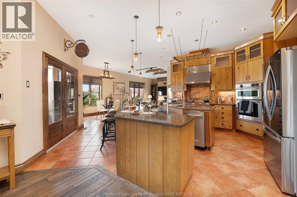Welcome to 4648 Jenkela, sensational 2580sqft Tuscan Inspired Ranch Villa set at end of a quiet cul-de-sac in prestigious Southwood Lakes. Impressive stone/stucco ext, steel tiled roof, solid wood dbl gar drs, & iron work framing wndws & main entry. Exquisite int detailing: solid ash wood thruout home, Premium Limestone & Brazilian Hdwd flrg. Soaring ceiling allow for entertainer’s dream w/open concept chef’s kit c/w gas cooktop, b-in wall ovens, formal din area c/w JenAir espresso machine & wine frig. Informal eating area, liv rm w/gfp, 3 bdrms, 2.5 baths on main. Primary bdrm uniquely designed w/6 pc ensuite incl bidet. Spac walk-in closet. Fin'd bsmt incl 2nd kit, grand cantina, fam rm w/gfp, 3+ bdrms, bath & extra bath rough-in. Villa is on a landscaped pie-shaped lot. Enjoy backyard tranquility under lrg covered patio w/bbq, heated salt-water pool, strg shed, pool house, pergola & powder-rm access from outdoors. C/Vac, HRV, Security System. (id:4555)