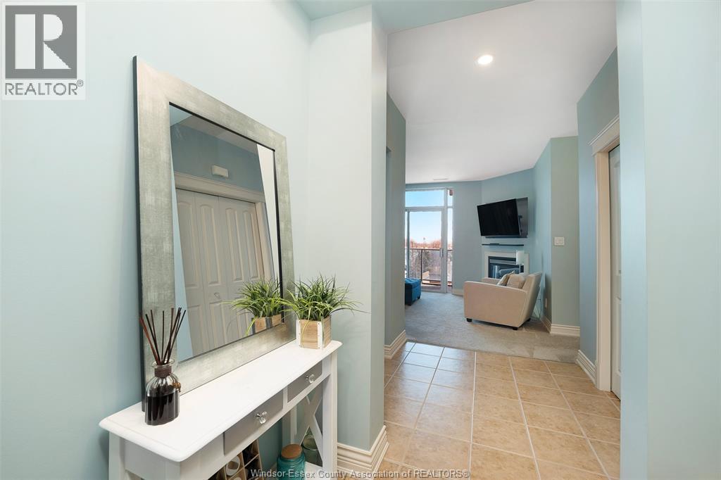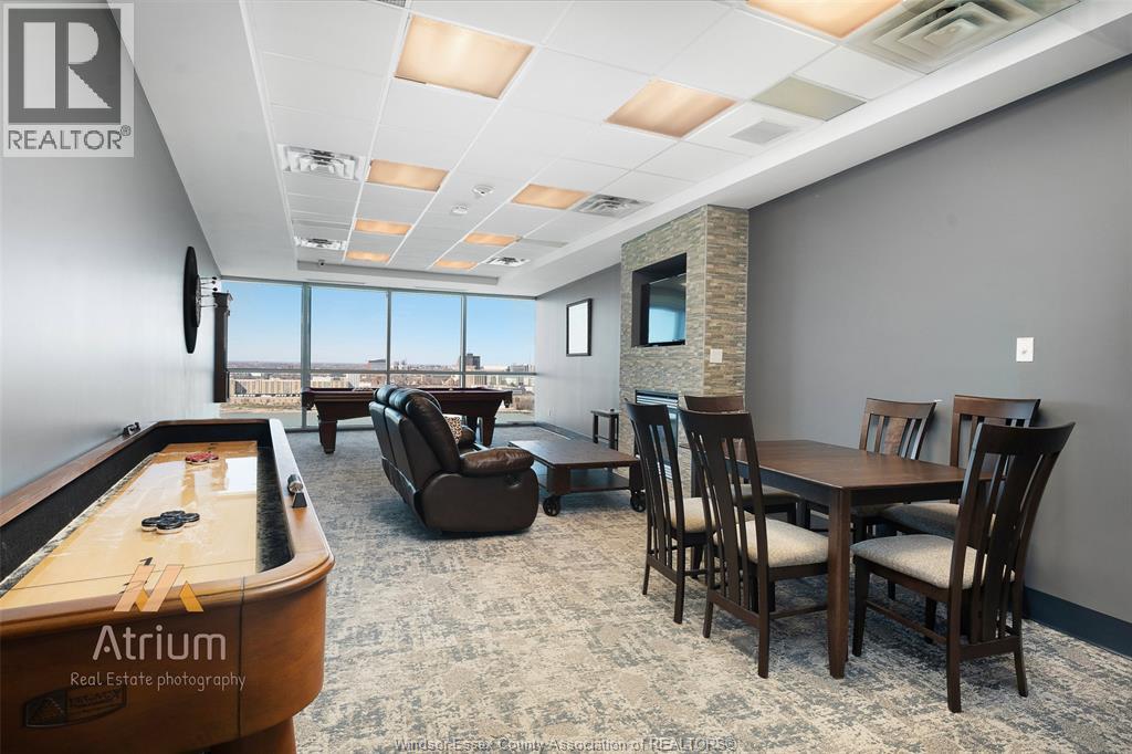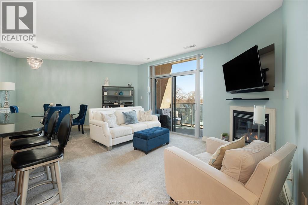 This lovely open concept 2 bedroom 2 bathroom suite offers comfort style and a fantastic location just minutes to the Ambassador Bridge, Detroit-Windsor Tunnel, Hwy 401, and Windsor University. Across the street waterfront park with bike paths and walking trails await you. This spacious suite features a cozy fireplace in living room, impressive kitchen with granite countertops and breakfast bar, open to dining room. Large primary suite with spacious walk-in closet and beautiful 4 piece ensuite is a peaceful retreat. 2nd bedroom and main 3 piece bath offers flexibility for guests or a home office. Step out on your private balcony for fresh air. In suite laundry for your convenience. Underground parking space and storage unit. Amenities include: Gym, Sauna, Library, Billiard Room 2 Guest Suites, Party Room, Rooftop Terraces with BBQ. (id:4555)