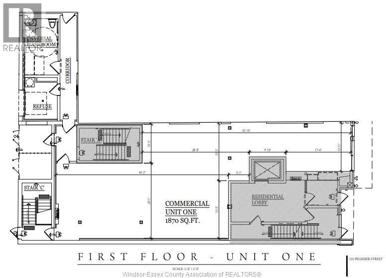 There is nothing like this space available in downtown Windsor. Brand new main floor space ready to go in ""The Hive on Pelissier"" a boutique 24 unit condominium building in the heart of downtown Windsor. Bring us your ideas and together we can work to bring your vision to reality. This brand new blank slate space offers 1870 sqft plus the option to lease an additional 1203 sqft in the lower level. Turn key build outs available. Excellent visibility among boutique shops, restaurants, law and professional offices, USA commuter traffic, downtown St Clair College & U of W students and the downtown Windsor Farmers Market. Join the Downtown Windsor Renascence with multiple residential projects under development, completed and under construction which plan to add thousands of residents to the downtown core. Call today for more information or a personal tour. (id:4555)