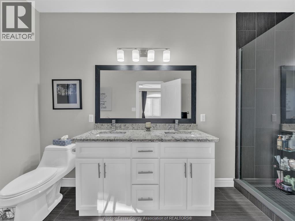 BUILT IN 2014 AND LOCATED IN A HIGHLY SOUGHT AFTER EAST RIVERSIDE LOCATION, THIS BRICK/STONE TO ROOF HOME FEATURES 3+2 BEDROOMS/OFFICE, 3 FULL BATHROOMS, HARDWOOD & CERAMIC THROUGHOUT MAIN FLOOR, INCLUDING LIVING ROOM W/CATHEDRAL CEILINGS, MODERN WHITE KITCHEN W/ GRANITE TOPS, BACK SPLASH & STAINLESS APPLIANCES STAY! SEPARATE DINING ROOM W/ LARGE PANTRY, 2 LARGE BEDROOMS ON MAIN FLOOR, MASTER SUITE UPSTAIRS, WITH WALK-IN CLOSET, CERAMIC/GLASS SHOWER AND DOUBLE VANITY IN GRANITE, LOWER LEVEL HAS BEEN WONDERFULLY FINISHED W/ FAMILY ROOM, GAS FIREPLACE FINISHED IN CULTURED STONE, GAMES/PLAY ROOM, BEDROOM, OFFICE & CERAMIC/GLASS SHOWER BATHROOM. FRENCH DOORS TO LARGE DECK, AGGREGATE PATIO & DRIVEWAY, WALK TO ST. JOSEPH SCHOOL, PARKS, SHOPPING & WFCU CENTRE. BOOK YOUR SHOWING TODAY! (id:4555)