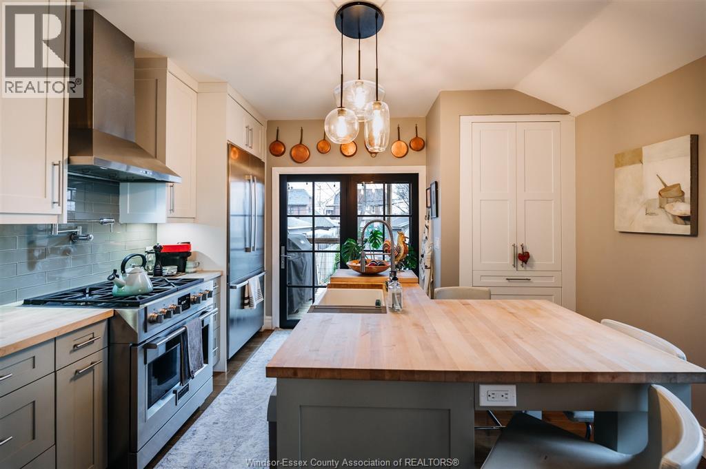 Set on an extra large lot in the heart of Walkerville, this thoughtfully updated all-brick semi offers a right-sized alternative, prioritizing natural light, ease of living, and connection to the outdoors. High-end windows fill the home with natural light, while the custom kitchen anchors the main floor with thoughtful design, premium appliances, and a layout that supports both everyday living and entertaining. Upstairs, the primary bedroom features his and hers closets with a roughed-in ensuite, alongside a fully renovated main bath with custom cabinetry and generous storage. The third floor offers a finished loft-style space with its own 2-piece bath—ideal for guests, a studio, or flexible bonus space. For someone who values ease over excess, and a home that feels finished, intentional, and ready to live in—without the demands of a larger property. A rare balance of design and lifestyle in the heart of Walkerville. Located within walking distance to parks, schools, the waterfront, shops, and local restaurants. Outdoor space is thoughtfully designed with a large deck, patio, and covered area with gas line—creating a private, low-maintenance extension of the home. Extensive updates include new windows and doors, metal roof, updated siding and insulation, and a composite front deck, with additional improvements throughout. A thoughtful alternative to larger homes—offering a move-in ready lifestyle where design, location, and ease come together. (id:4555)