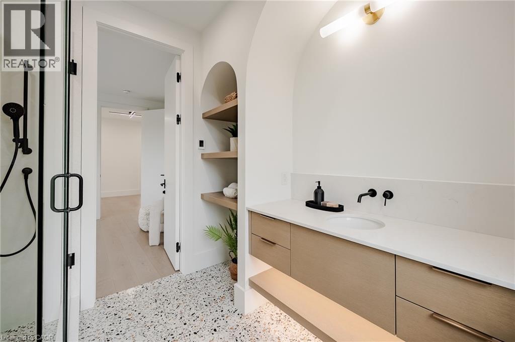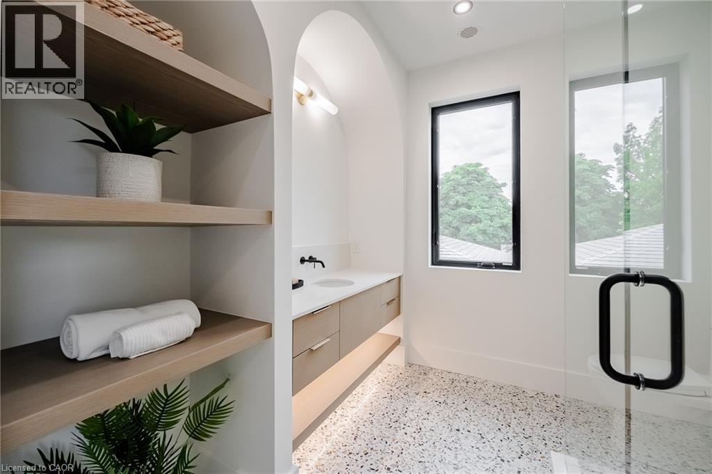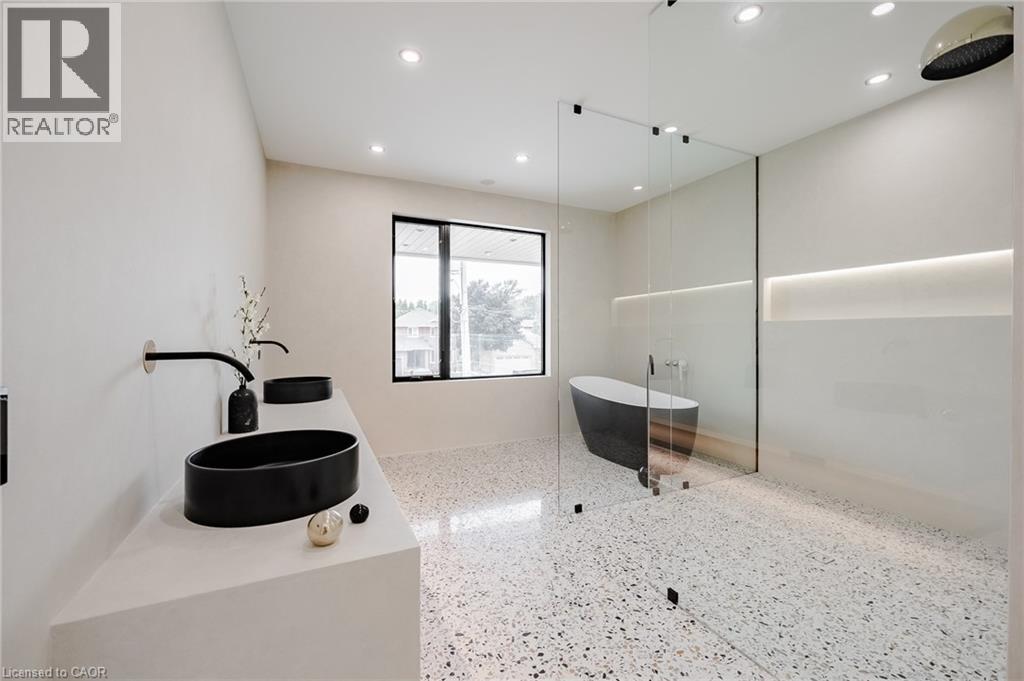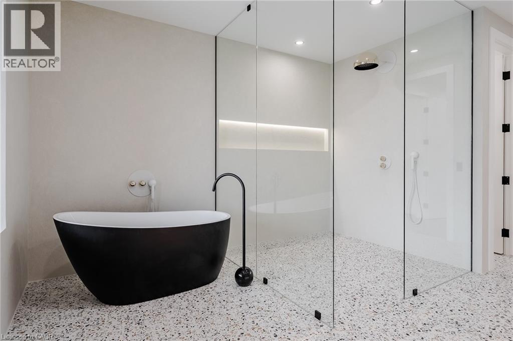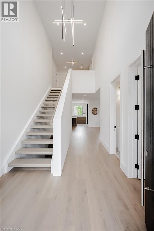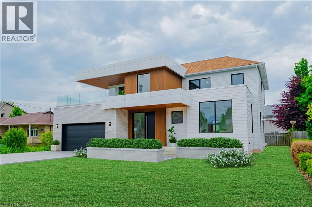 This newly built home is perfectly tailored for the discerning buyer, who appreciates the blend of contemporary design, expert craftsmanship, and high-performance luxury. It demands your attention, with it's sleek, modern silhouette while featuring bright, airy interiors that have been meticulously finished with no expense spared. A true architectural masterpiece, enter into the foyer to find soaring ceilings, Italian White Oak hardwood flooring, and open concept main floor bathed in natural light through the high-end fiberglass windows. The eat-in kitchen features an oversize island, Wolf gas range, custom white oak cabinetry, stone countertops, Butler's pantry, and walkout to a covered rear porch, perfect for summertime dinners. The main floor is completed with a spacious living room, formal dining room, and mudroom with access to the garage and laundry area. Upstairs, the large primary suite offers a luxurious retreat with a spa-inspired ensuite bathroom with heated Terrazzo flooring, a grandiose walk-in closet, and a large, private covered balcony—perfect for enjoying morning coffee while looking towards the lake. The two additional bedrooms each have their own ensuite bathrooms with heated Terrazzo flooring and walk-in closet, providing comfort and privacy for family or guests. The expansive, partially finished basement boasts 9' ceilings, large windows bringing in ample natural light, and continuous spray foam insulation, providing a versatile canvas for your personalized finishing touches. This home is custom-built by the reputable Tarion-registered builder Rockpointe Custom Homes, offering peace of mind with the security of a full Tarion Warranty. Located in the gateway to the Niagara region, Winona is perfect for those who are looking to enjoy the many fabulous restaurants, wineries, and shops of Niagara has to offer. Its also home to the 50 Point Marina, 50 Point Conservation area, & Winona Crossing shopping area with Costco, LCBO, Metro & more. (id:4555)