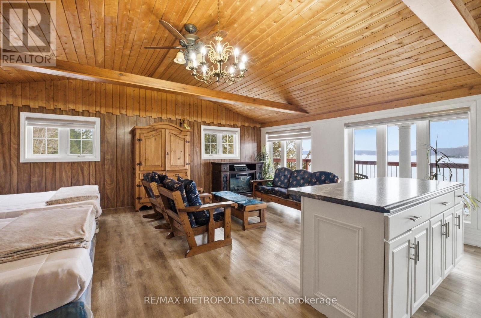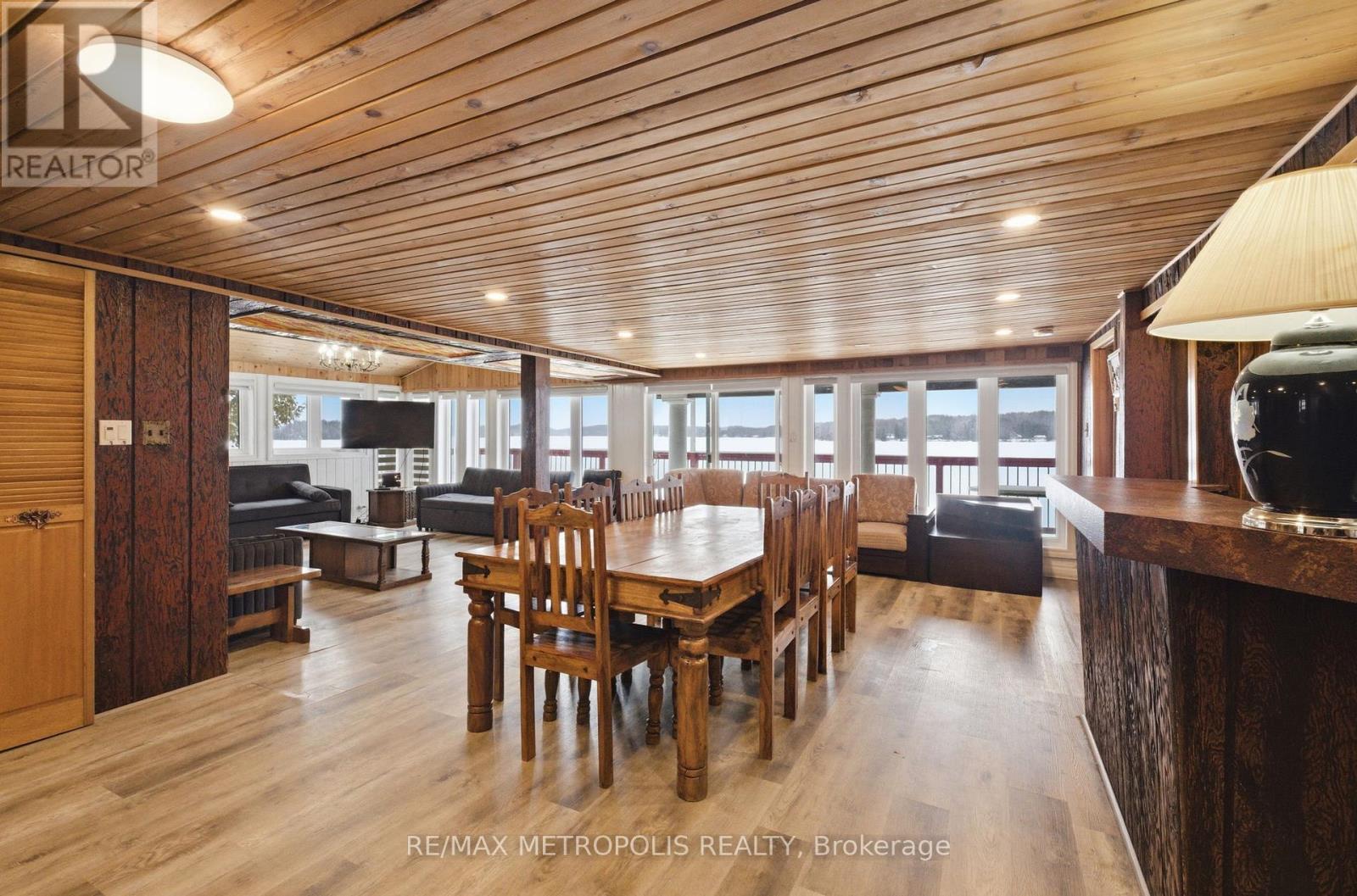 Rare waterfront compound on Wollaston Lake featuring approx. 530 ft of pristine shoreline and stunning west-facing sunset views. Set on a spacious lot, this unique property offers a large main residence with multiple self-contained units accommodating up to 25 guests-ideal for short-term rental income or multi-family use. Includes a separate 2-bedroom cottage with private shoreline and a standout 2-storey double boathouse with wet slips and upper-level flex space. Numerous recent upgrades throughout provide a turnkey opportunity. Additional land across the road offers future development potential. A versatile investment and lifestyle property within reach of the GTA and Ottawa. (id:4555)