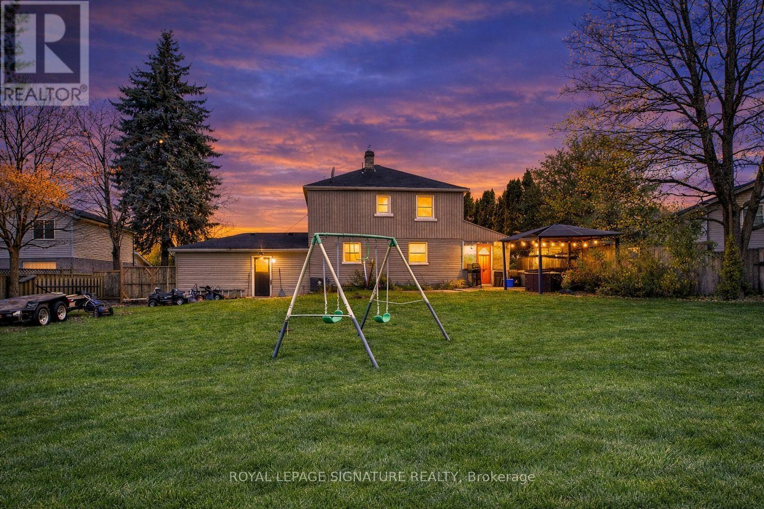 Experience refined living in this beautifully updated 2-storey detached home, perfectly positioned on a rare double-wide 0.25-acre lot in the heart of Woodstock. With 150 ft of depth, this property offers an exceptional balance of space, style, and sophistication. The main floor has been thoughtfully renovated to blend comfort with modern design-ideal for both entertaining and everyday living. Upstairs, you'll find three spacious bedrooms, while the finished basement adds a fourth bedroom and flexible living area suited for a home office, gym, or guest suite. The backyard is a true private oasis, featuring a relaxing hot tub, elegant gazebo, and ample space for outdoor dining or recreation. Complete with a double garage, abundant parking, and a prime location close to schools, parks, and downtown amenities, this property offers the perfect combination of luxury, functionality, and timeless appeal. (id:4555)