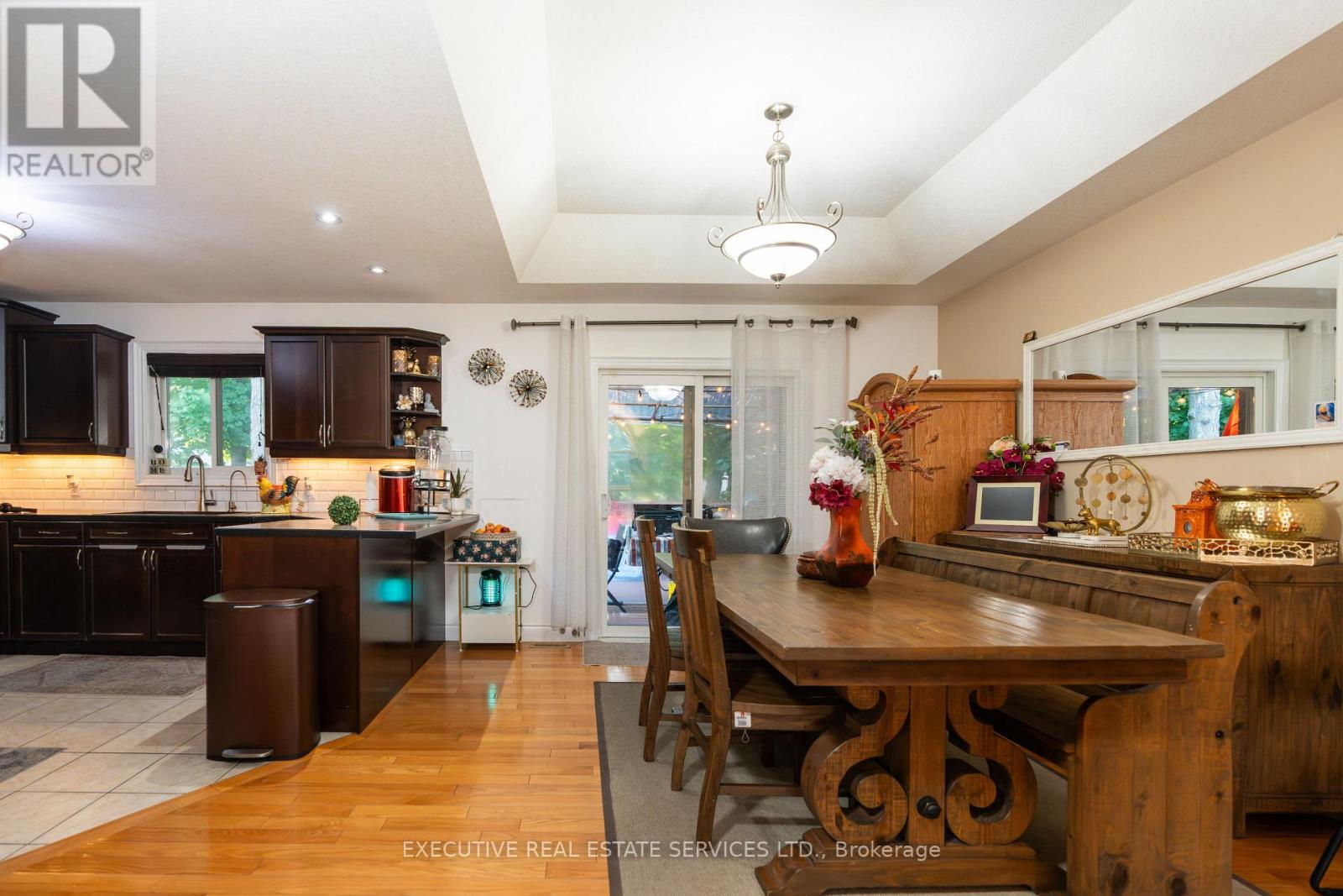 Welcome to 131 Forestway Trail, Woodstock, a premium detached home offering 3,348 sq.ft. of finished living space on a 52.49 x 95.83 ft ravine-like lot surrounded by mature trees. This elegant home features a grand double-door entry with soaring open foyer, a spacious open-concept kitchen, dining and family area, and three generous bedrooms with two full bathrooms upstairs, including an oversized primary suite with a luxurious 5-piece ensuite and private deck access. Enjoy two large decks, a fully finished walk-out basement with recreation area, bedroom and full bath-ideal for in-laws or guests-plus parking for up to five vehicles and beautifully landscaped front gardens. Conveniently located minutes to Hwy 401, parks, top schools, shopping centres and Woodstock General Hospital, this home perfectly blends luxury, space and everyday convenience. (id:4555)
