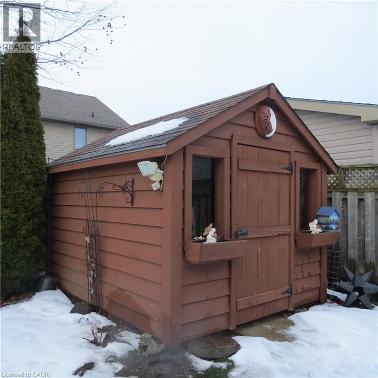 The paved stone driveway and curved walkway to the covered front door welcome you home to 209 Kingfisher Ave. Entering the spacious foyer you are wowed by the living room with gas fireplace, cathedral/ceiling and bay window. The sunlit din/kit area boast engineered hardwood floors, oak cupboards including pantry, lots of counter space and 4 stainless steel appliances. Patio doors lead to a covered deck with direct natural gas hook up for bbqing, shutters for privacy and a good view of the landscaped fenced yard. An adorable she-shed and utility shed hold endless possibilities. The primary bedroom has a lovely ensuite and his and her double closets. The main bath, second bedrooms and laundry are located on the second level. Steps down from the foyer enter into a large L-shaped rec room that is sure to convince you this is your new home. A 3rd bedroom, 3-piece bath and endless storage are also on this level. Lovingly cared for home. Move-in condition! (id:4555)