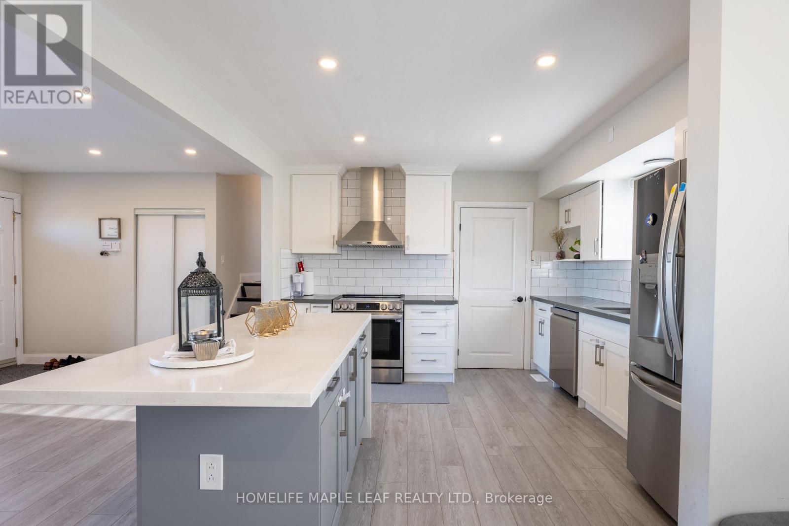 Beautifully Renovated Home with In-Law Suite - Move-In Ready! Welcome to this stunning, fully renovated home featuring an open-concept living area perfect for modern living. The sleek white and grey kitchen boasts beautiful wood cabinetry, a waterfall island, and plenty of storage space, making it the heart of the home. Just a few steps up, you'll find three spacious bedrooms and a stylish, updated 3-piece bathroom with a standing shower, providing comfort and convenience for your family. The lower level offers a private in-law suite, complete with two bedrooms, a full kitchen, a 3-piece bathroom, and a storage room-ideal for extended family or rental potential. Key Highlights: Fully Renovated in 2022-2023 , including all new plumbing , flooring and paint Roof shingles replaced in July 2023.Prime location, just 5 minutes from Walmart, Canadian Tire, Home Depot, and other amenities. Easy access to Highway 401 with three main exits and close proximity to the Toyota plant. This home is the perfect blend of modern design, practicality, and location. Don't miss this incredible opportunity to own a move-in-ready property in a highly sought-after area! (id:4555)
