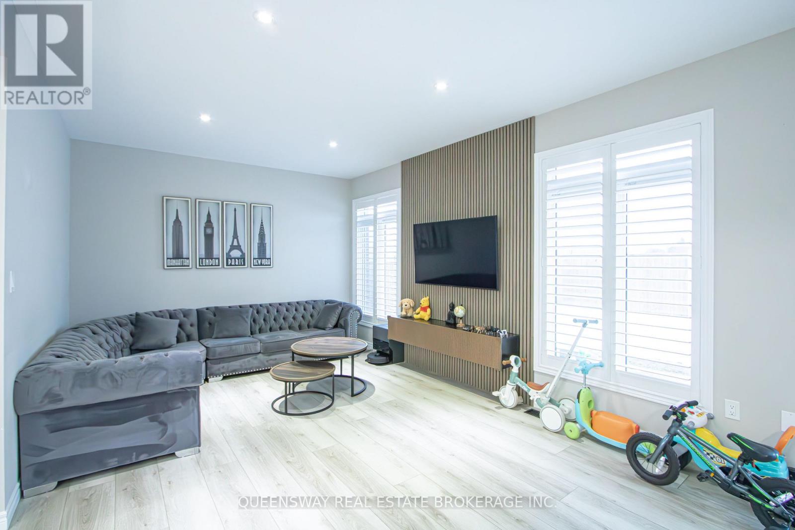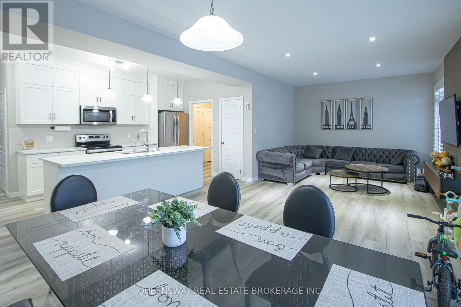 Make a statement the moment you arrive. Step into a grand, sun-filled foyer with soaring ceilings and a striking 7-ft chandelier set within an impressive 20-ft entrance-an unforgettable first impression that sets the tone for this open and elegant home. This nearly new, custom-built detached residence offers Tarion warranty remaining and sits on a rare oversized pie-shaped lot, providing exceptional outdoor potential. The main floor features high ceilings throughout and an upgraded kitchen complete with quartz countertops, extended cabinetry, stainless steel appliances, a custom appliance garage, and a stylish accent slat wall-flowing seamlessly into the main living space, ideal for both everyday living and entertaining. Upstairs, enjoy a spacious family room that can easily convert to an additional bedroom, along with a well-appointed primary suite featuring a walk-in closet and a 4-pc ensuite. Premium wide-plank flooring on the main level, a double-car garage, and a sought-after family-friendly neighbourhood close to Highways 401 & 403, shopping, and daily conveniences complete the package. A rare combination of modern design, premium lot size, and thoughtful upgrades-this is the kind of home buyers wait for. (id:4555)