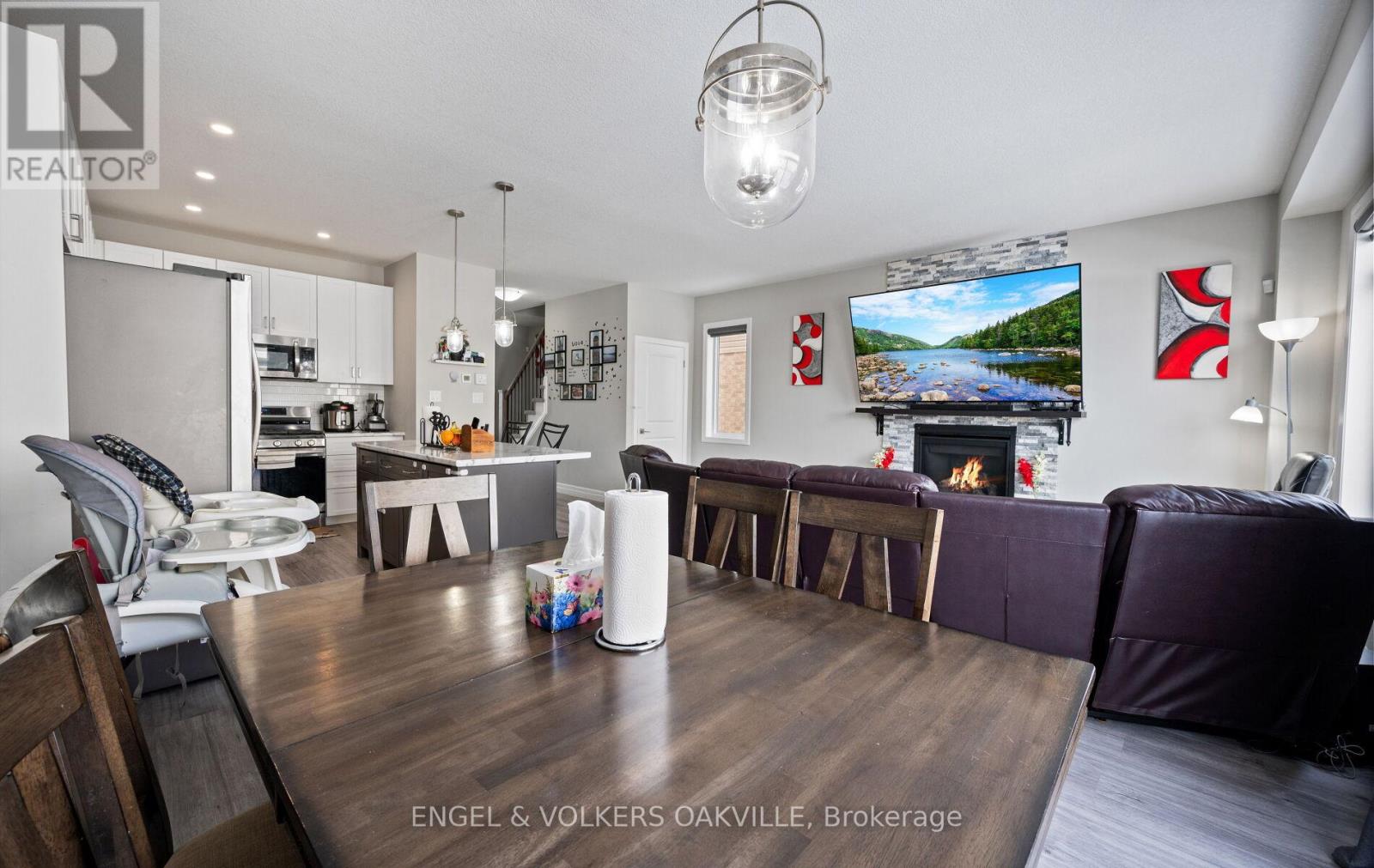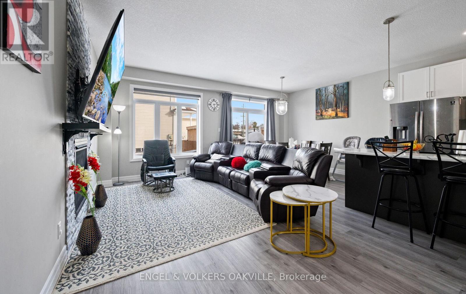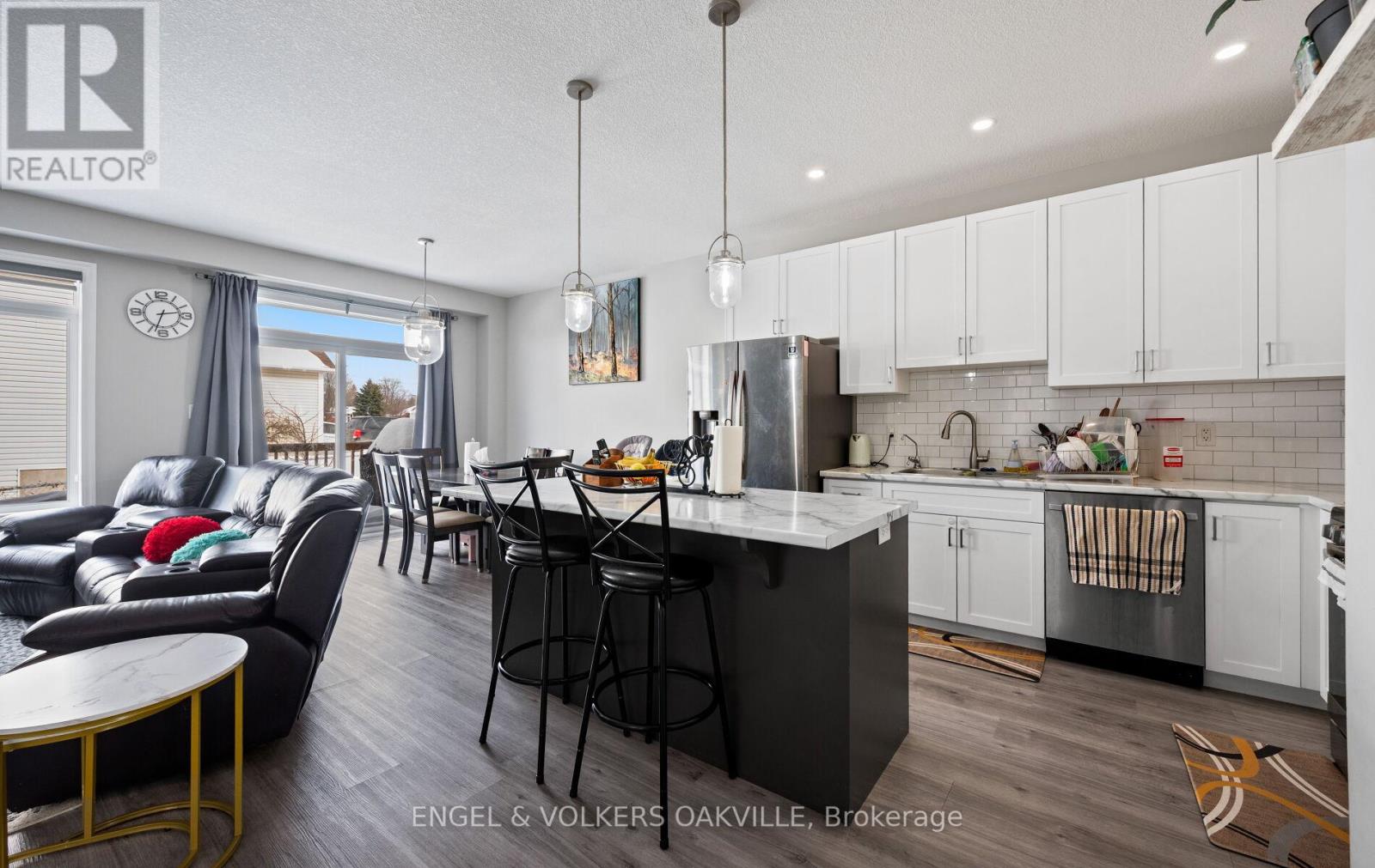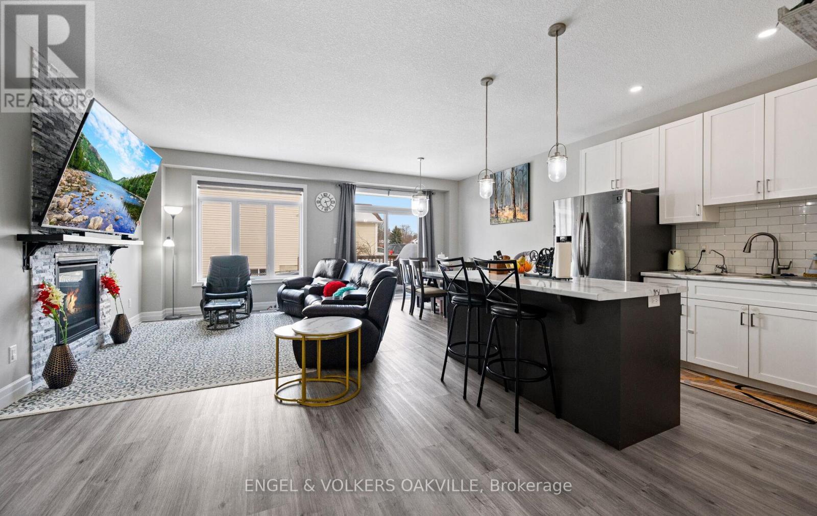 Welcome to this beautifully upgraded condo townhouse in Woodstock's highly desirable north end - a location that offers exceptional accessibility and long-term value. Just minutes to Highways 401 and 403 and the Toyota Manufacturing Plant, this home is perfectly positioned for commuters and professionals seeking convenience without compromising lifestyle. Walk to excellent schools, scenic parks and trails, Sobeys, local dining, and Pittock Golf Course - everything you need, right at your doorstep.Offering over 1,400 sq ft above grade, this freshly updated home features new flooring, modern bathroom vanities, and a fresh designer paint palette throughout. The open-concept main floor is filled with natural light and designed for connection. A cozy fireplace and striking stoned feature wall add warmth and character to the living space.The upgraded kitchen showcases sleek countertops, a spacious center island, and the flexibility of both gas and electric stove lines. Statement chandeliers over the island and dining area elevate the space beyond standard finishes. The layout flows seamlessly into the living and dining areas - ideal for entertaining or enjoying relaxed evenings at home.Upstairs, you'll find three spacious bedrooms, including a generous primary retreat with its own private ensuite. A well-appointed 3-piece bathroom serves the additional bedrooms, offering comfort and practicality for family living. Modern custom blinds throughout complete the contemporary feel.The basement provides excellent future potential, with framing already completed and a bathroom insert in place - ready for your vision. Step outside to a deck equipped with a gas line for BBQs, making outdoor entertaining effortless. With thoughtful upgrades, expansion potential, and unbeatable north Woodstock accessibility, this home is an exceptional opportunity for families, professionals, or investors seeking style, comfort, and convenience in one complete package. (id:4555)