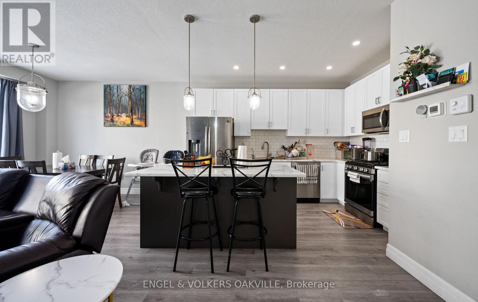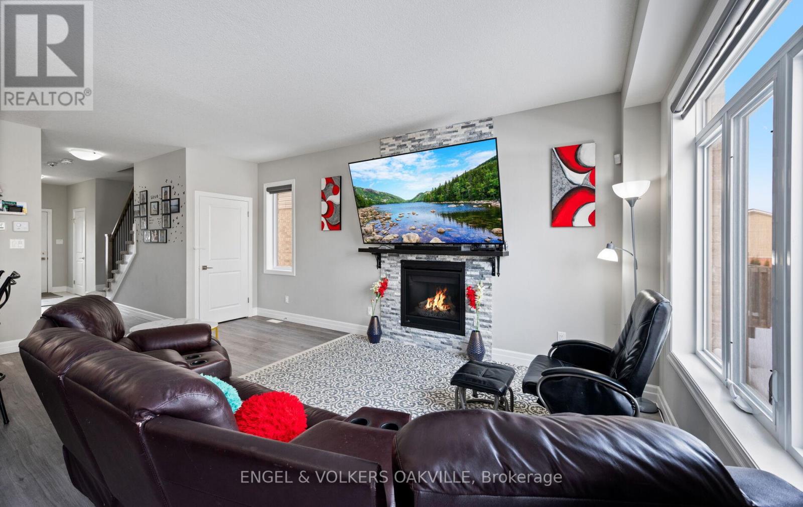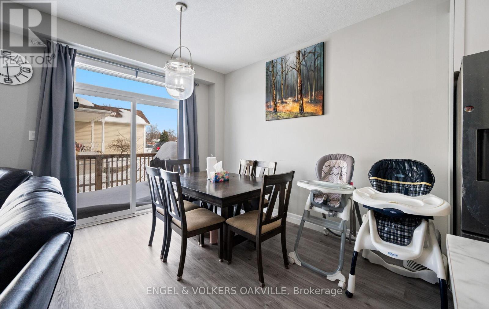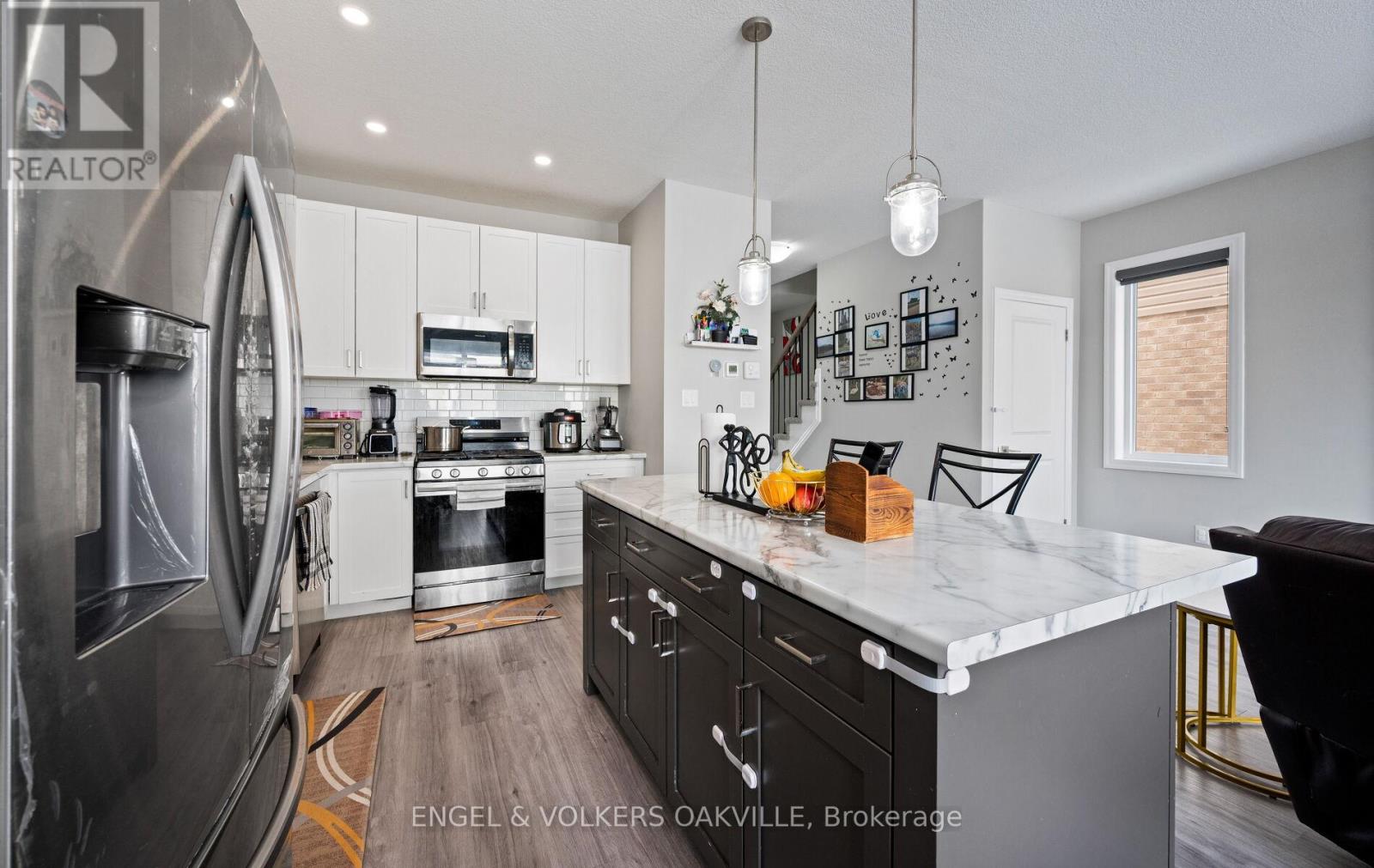 Welcome to this beautifully upgraded condo townhouse in Woodstock's highly desirable north end - a location that offers exceptional accessibility and long-term value. Just minutes to Highways 401 and 403 and the Toyota Manufacturing Plant, this home is perfectly positioned for commuters and professionals seeking convenience without compromising lifestyle. Walk to excellent schools, scenic parks and trails, Sobeys, local dining, and Pittock Golf Course - everything you need, right at your doorstep.Offering over 1,400 sq ft above grade, this freshly updated home features new flooring, modern bathroom vanities, and a fresh designer paint palette throughout. The open-concept main floor is filled with natural light and designed for connection. A cozy fireplace and striking stoned feature wall add warmth and character to the living space.The upgraded kitchen showcases sleek countertops, a spacious center island, and the flexibility of both gas and electric stove lines. Statement chandeliers over the island and dining area elevate the space beyond standard finishes. The layout flows seamlessly into the living and dining areas - ideal for entertaining or enjoying relaxed evenings at home.Upstairs, you'll find three spacious bedrooms, including a generous primary retreat with its own private ensuite. A well-appointed 3-piece bathroom serves the additional bedrooms, offering comfort and practicality for family living. Modern custom blinds throughout complete the contemporary feel.The basement provides excellent future potential, with framing already completed and a bathroom insert in place - ready for your vision. Step outside to a deck equipped with a gas line for BBQs, making outdoor entertaining effortless. With thoughtful upgrades, expansion potential, and unbeatable north Woodstock accessibility, this home is an exceptional opportunity for families, professionals, or investors seeking style, comfort, and convenience in one complete package. (id:4555)