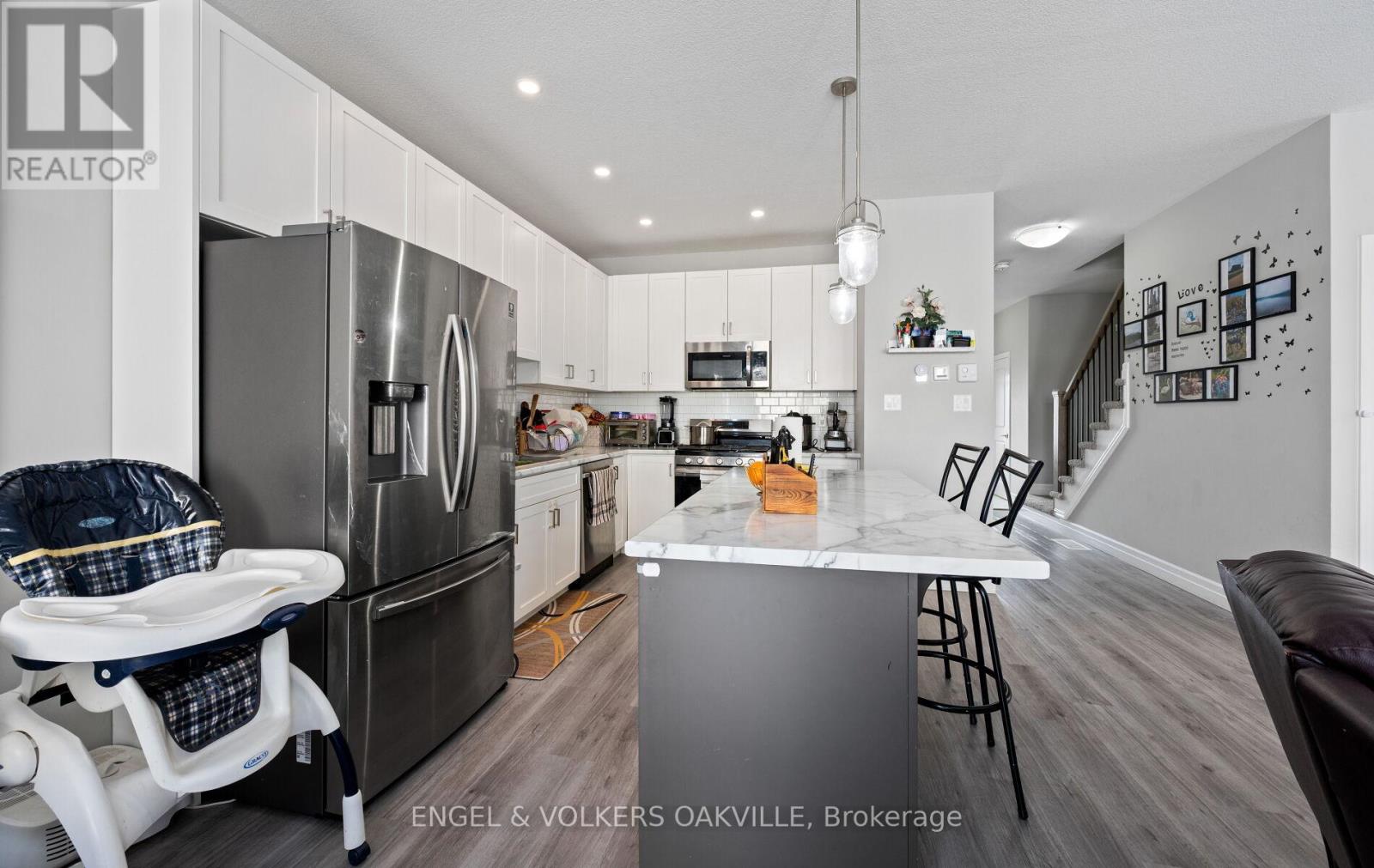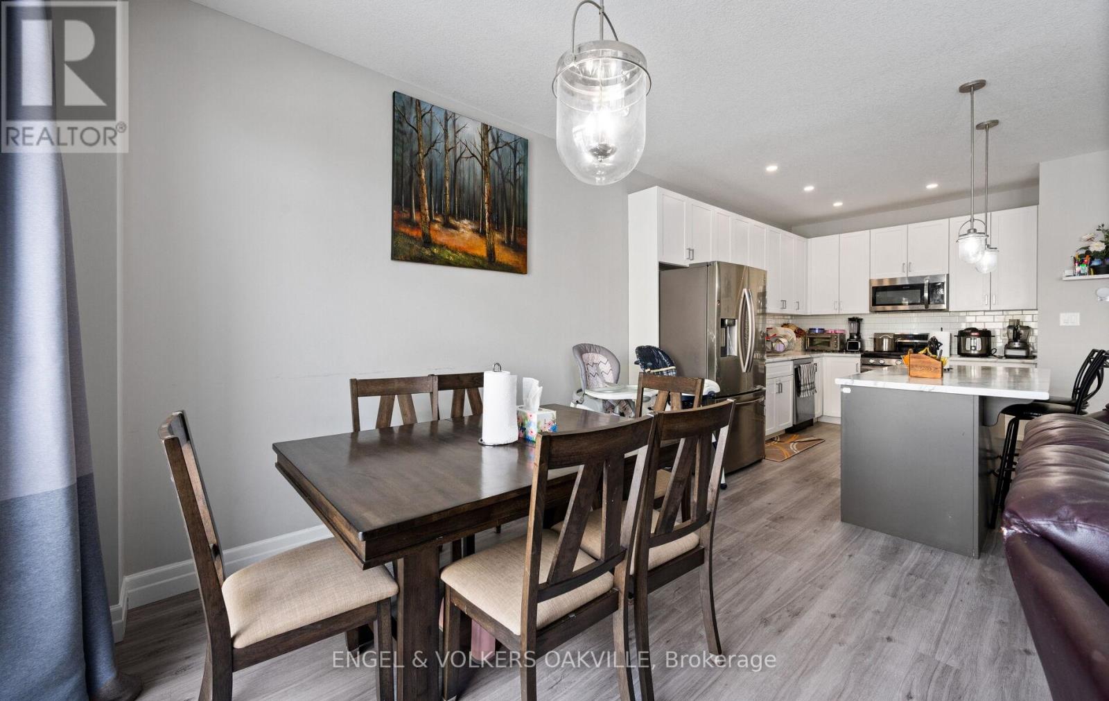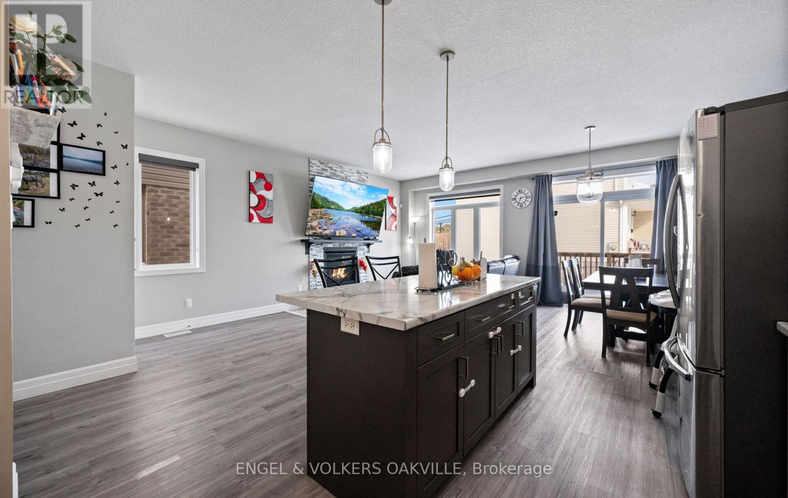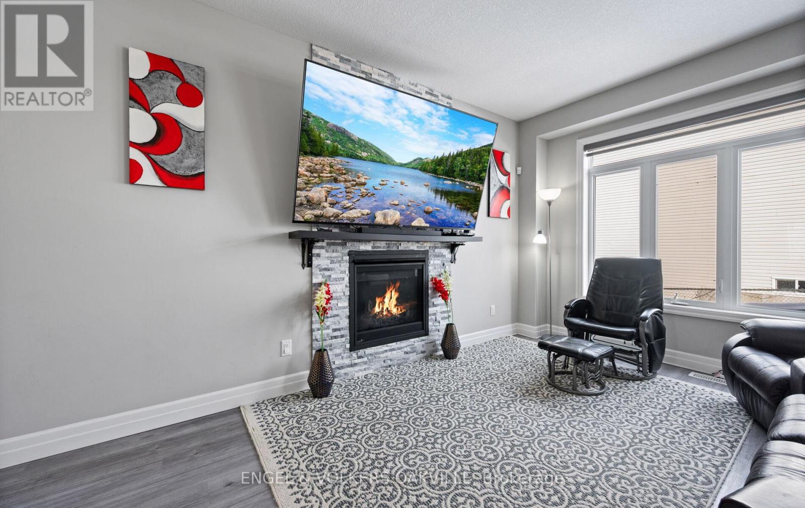 Welcome to this beautifully upgraded condo townhouse in Woodstock's highly desirable north end - a location that offers exceptional accessibility and long-term value. Just minutes to Highways 401 and 403 and the Toyota Manufacturing Plant, this home is perfectly positioned for commuters and professionals seeking convenience without compromising lifestyle. Walk to excellent schools, scenic parks and trails, Sobeys, local dining, and Pittock Golf Course - everything you need, right at your doorstep.Offering over 1,400 sq ft above grade, this freshly updated home features new flooring, modern bathroom vanities, and a fresh designer paint palette throughout. The open-concept main floor is filled with natural light and designed for connection. A cozy fireplace and striking stoned feature wall add warmth and character to the living space.The upgraded kitchen showcases sleek countertops, a spacious center island, and the flexibility of both gas and electric stove lines. Statement chandeliers over the island and dining area elevate the space beyond standard finishes. The layout flows seamlessly into the living and dining areas - ideal for entertaining or enjoying relaxed evenings at home.Upstairs, you'll find three spacious bedrooms, including a generous primary retreat with its own private ensuite. A well-appointed 3-piece bathroom serves the additional bedrooms, offering comfort and practicality for family living. Modern custom blinds throughout complete the contemporary feel.The basement provides excellent future potential, with framing already completed and a bathroom insert in place - ready for your vision. Step outside to a deck equipped with a gas line for BBQs, making outdoor entertaining effortless. With thoughtful upgrades, expansion potential, and unbeatable north Woodstock accessibility, this home is an exceptional opportunity for families, professionals, or investors seeking style, comfort, and convenience in one complete package. (id:4555)