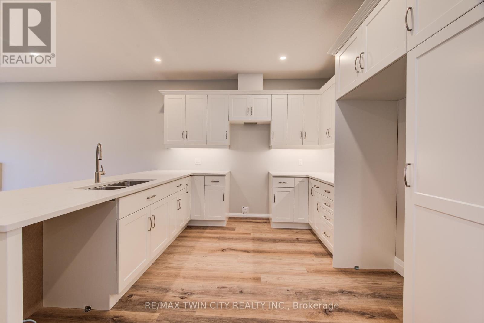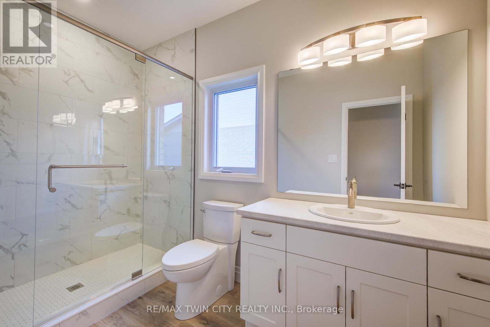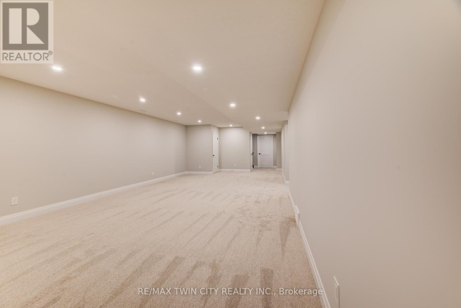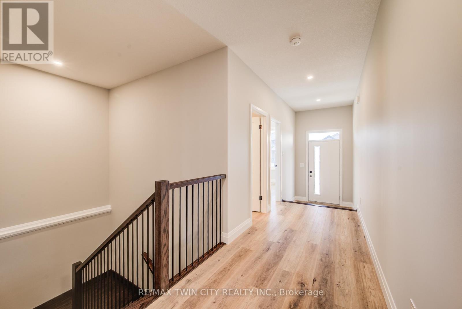 Features include gorgeous hardwood stairs, 9' ceilings on main floor, custom designer kitchen cabinetry including upgraded sink and taps with a beautiful quartz countertop. Dining area overlooks great room with electric fireplace as well as walk out to a huge 300+ sqft covered porch. The spacious primary suite has a walk in closet and glass/tile shower in the ensuite. Other upgrades include pot lighting, modern doors and trim, all plumbing fixtures including toilets, carpet free main floor with high quality hard surface flooring. Did I mention this home is well suited for multi generational living with in-law suite potential. The fully finished basement includes a rec room, bedroom, 3 pc bath. Enjoy the small town living feel that friendly Elmira has to offer with beautiful parks, trails, shopping and amenities all while being only 10 minutes from all that Waterloo and Kitchener have to offer. Expect to be impressed. (id:4555)