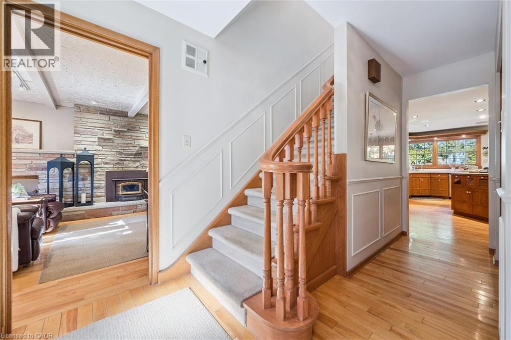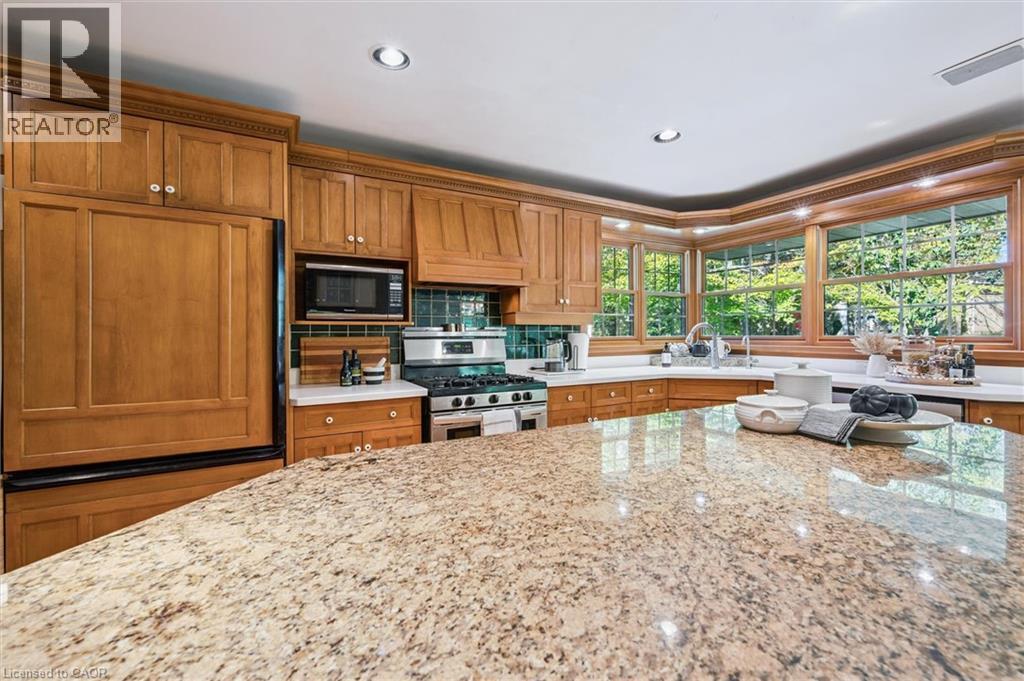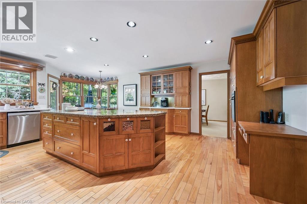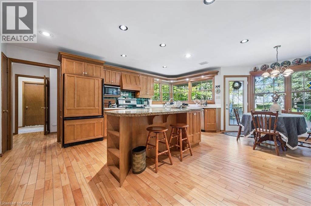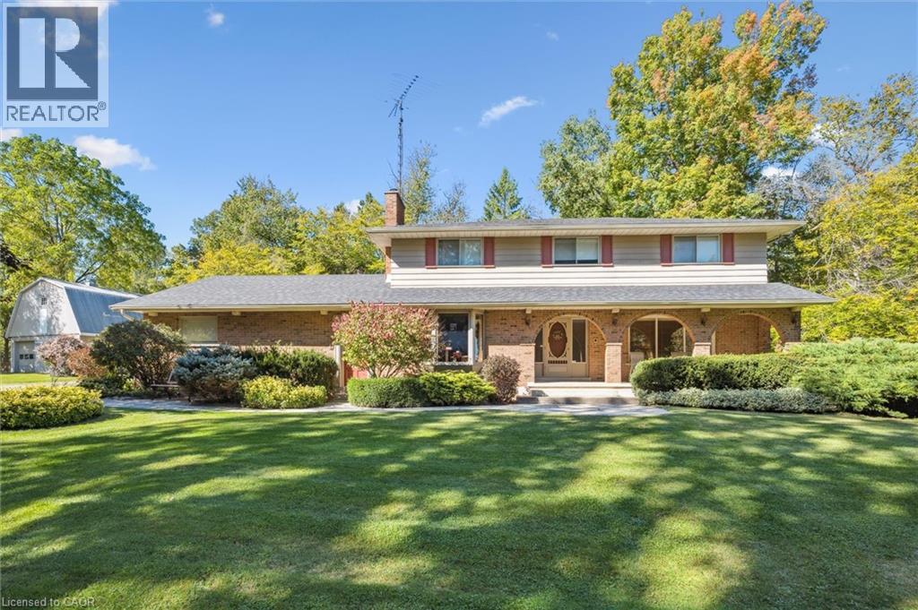 Welcome to this exceptional country retreat perfectly situated on a beautiful, treed 12.33-acre corner lot in sought-after Breslau. Enjoy peaceful country living just minutes from the city, near private school, and directly across golf course.This impressive 4-bedroom, 3.5-bath home offers over 3,400 sq. ft. of finished living space, combining warmth, functionality, and character throughout. The bright maple kitchen features granite countertops, a spacious dinette overlooking picturesque country views, and easy access to the formal dining and living rooms — perfect for entertaining. The cozy main-floor family room includes a wood-burning stove, while the convenient main-floor laundry adds everyday practicality.Upstairs, you’ll find four oversized bedrooms, including a primary suite with a walk-in closet and private ensuite. The fully finished basement with a separate entrance offers a large recreation room, full bathroom, and an oversized workshop — ideal for hobbyists or extended family living.Step outside to enjoy the covered front porch, large back deck, and beautifully landscaped grounds. Two large barns complete the property: one insulated block barn suitable for animals or workshop use, and a second 40’ x 60’ barn offering endless possibilities — from storage to a hobby farm setup.A rare opportunity to own a property that blends space, serenity, and versatility — all within minutes of Kitchener, Cambridge, and Guelph. (id:4555)