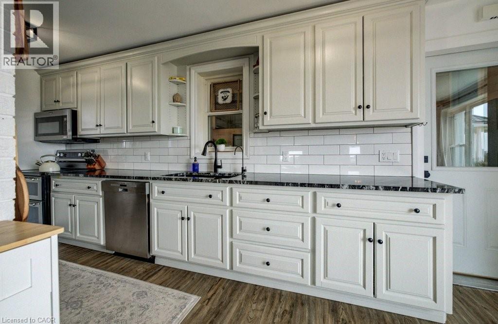 This home has been thoughtfully cared for in every direction. Surrounded by rolling farm land, this 3 bedroom, 1.5 bath beautiful country property has plenty of space for the family to play. Beneath the new vinyl siding, the home is double bricked, strapped, foam insulated, and all covered by a 50-year steel roof. Add in a recent high-efficiency propane furnace, spray-foamed basement, updated windows and doors, and this home is warm in the winter, cool in the summer, and efficient all year round! In addition you'll find updated wiring, plumbing, new water filtration system, and a completely renovated main floor bathroom all in the past 3-5 years. PLUS, enjoy the newly updated kitchen including refreshed cabinets, new granite countertops, and new subway tiling. And then, for all your tools, toys, and hobbies, take advantage of the large attached double-car garage that is insulated, heated, and clad with Trusscore. Outside, relax on the huge front porch, rejuvenate in your outdoor sauna, or sit deckside next to your heated above ground pool with infinity like panoramic views, all while hosting your guests in the charming cottagey bunkies with hydro. If that's not enough, pick a spot on your two acres to build your own large workshop, add a horse barn and pasture, or plant your own gardens. Property zoning is Residential with part agricultural which could allow for some animals. So much wrapped into one great property! (id:4555)